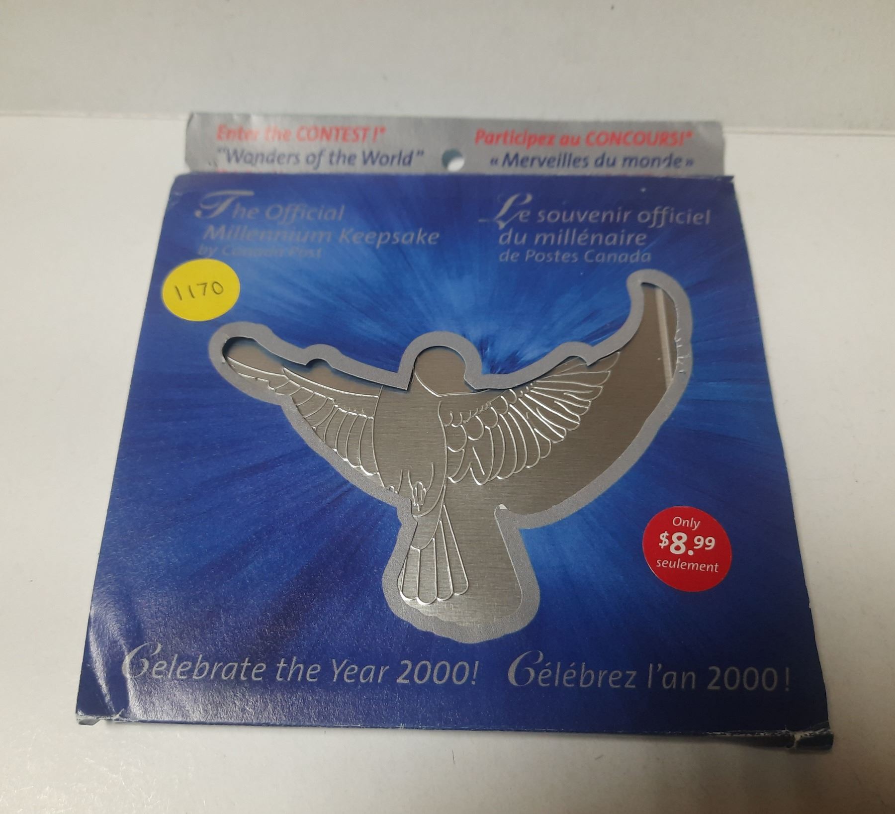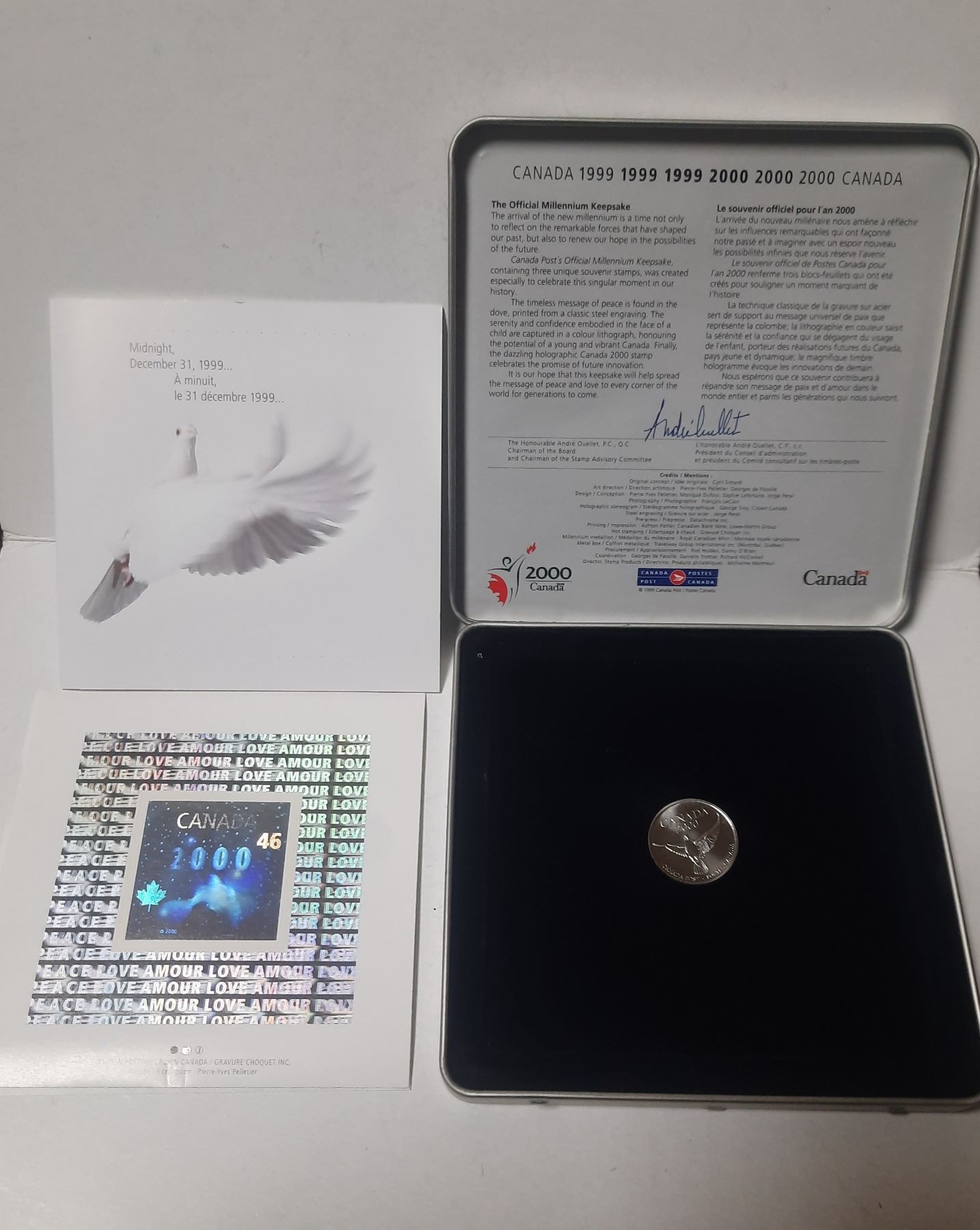 1999 – 2000 Official Millenium Keepsake. 3 Stamps and a Canada Post Dove medal.