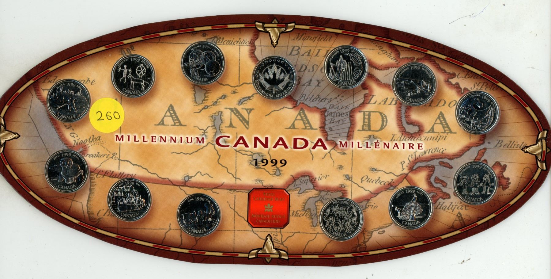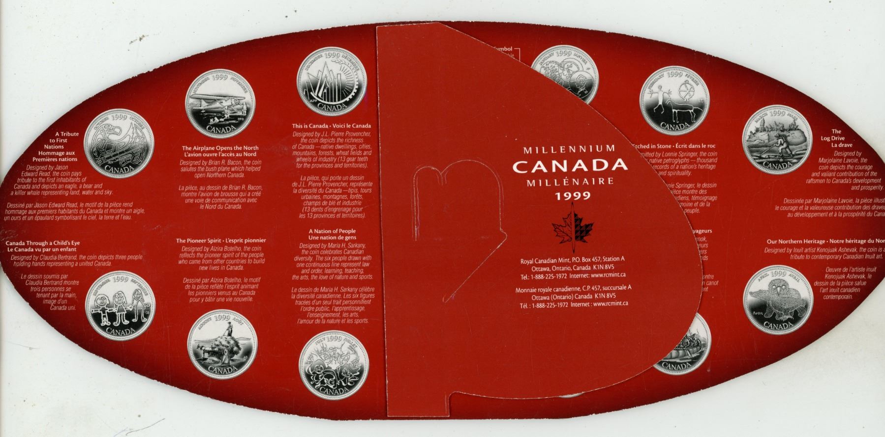1999 Canada Millennium 25 Cents Set. Complete 12 coins plus a RCM medal.