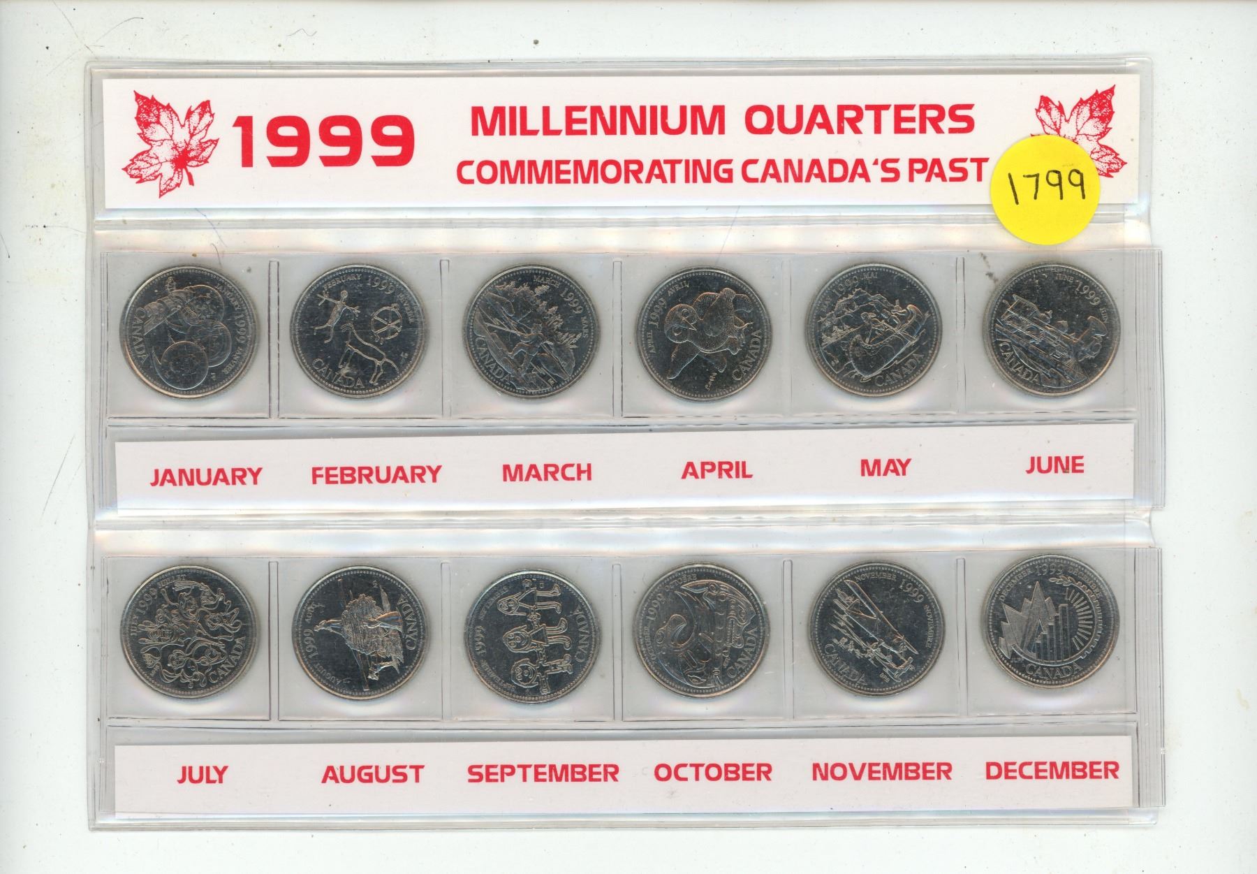 1999 Canadian 25-Cent Millennium Quarter 12-Coin Set.