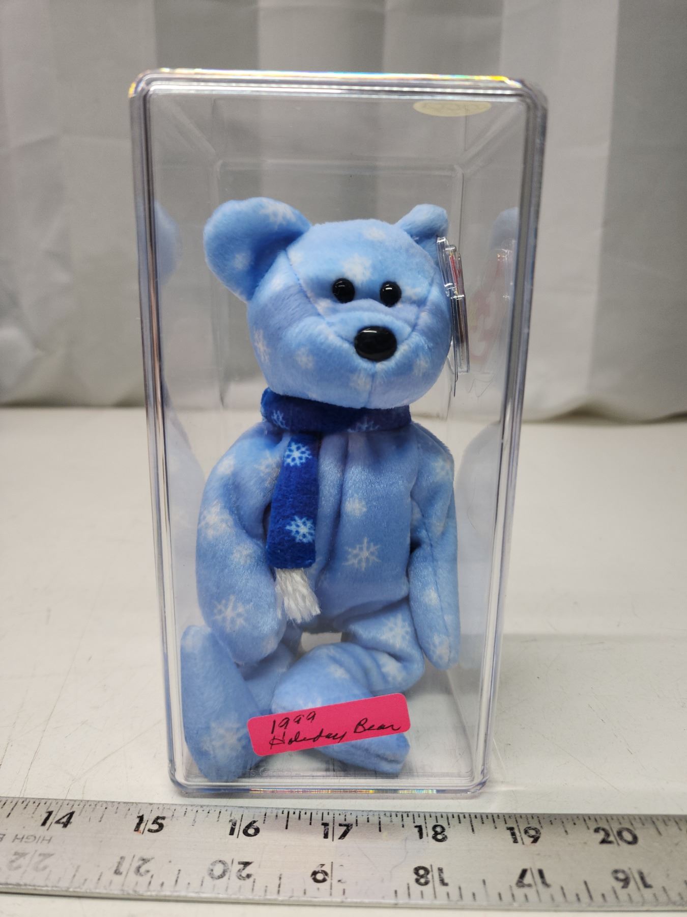 1999 "Holiday Teddy" collectible bear, ty beanie baby - in clear case, like new