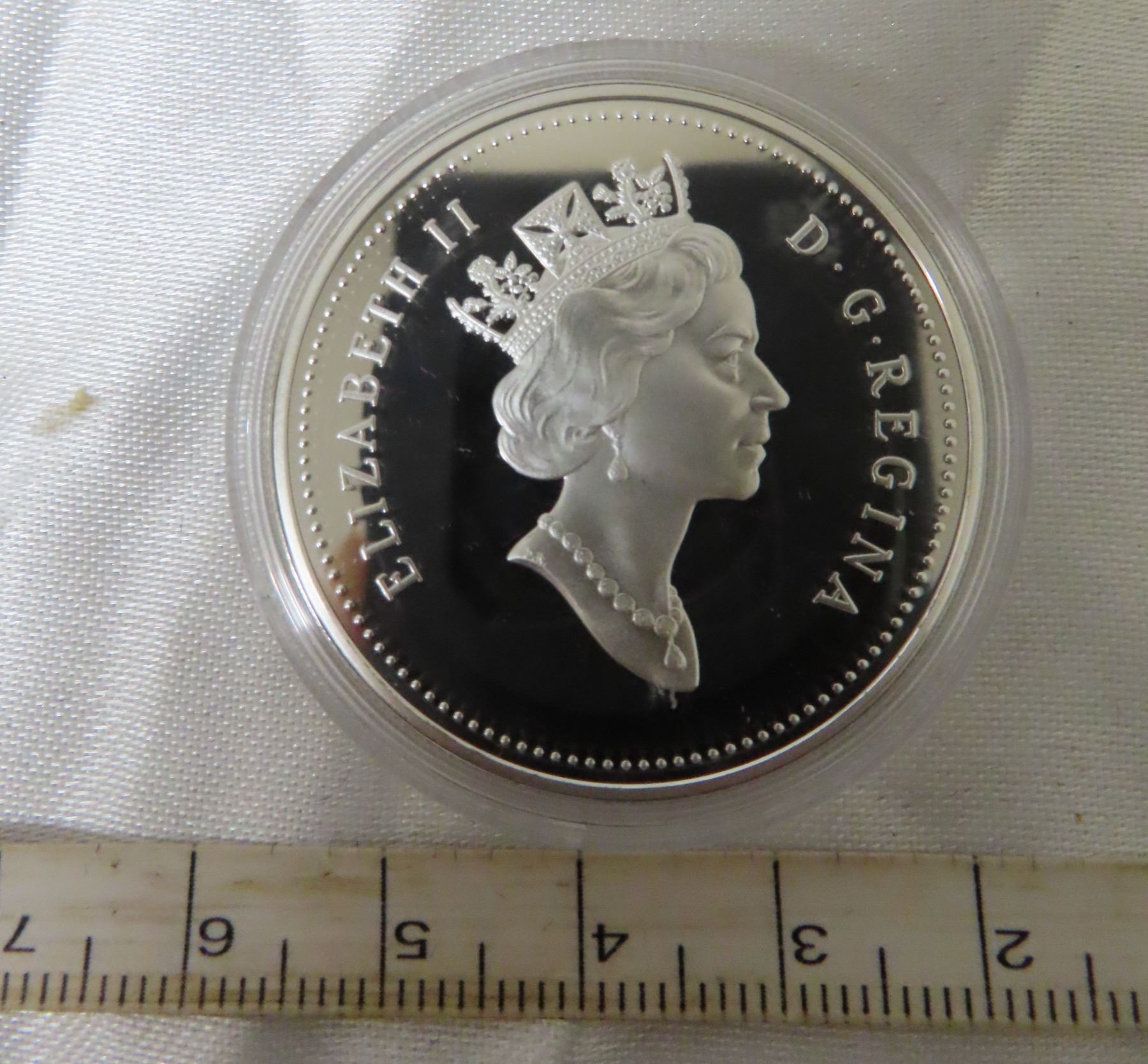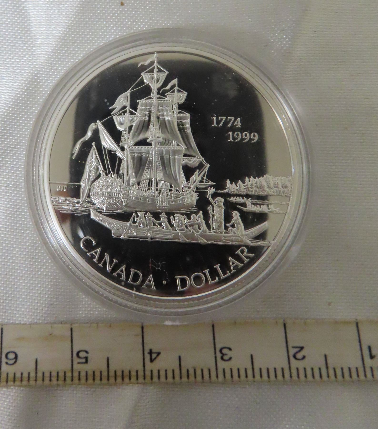 1999 Juan Perez/Queen Charlotte Island Silver Dollar. Sterling Silver. Proof with Ultra Heavy Cameo. Housed in its original Royal Canadian Mint case of issue.