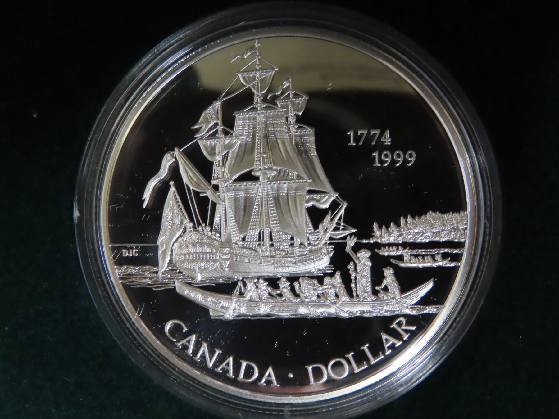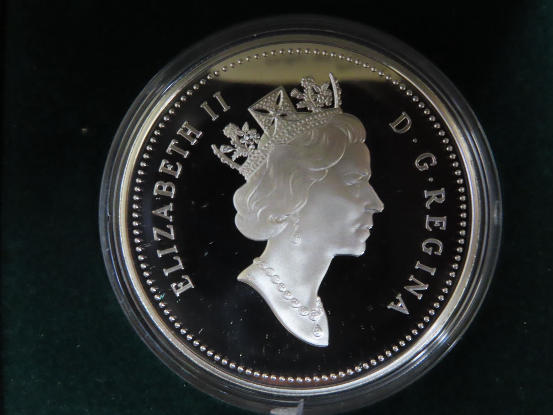 1999 Queen Charlotte Islands Proof Silver Dollar. Proof with Ultra Heavy Cameo. Bright White. Housed in its original green case & box of issue.