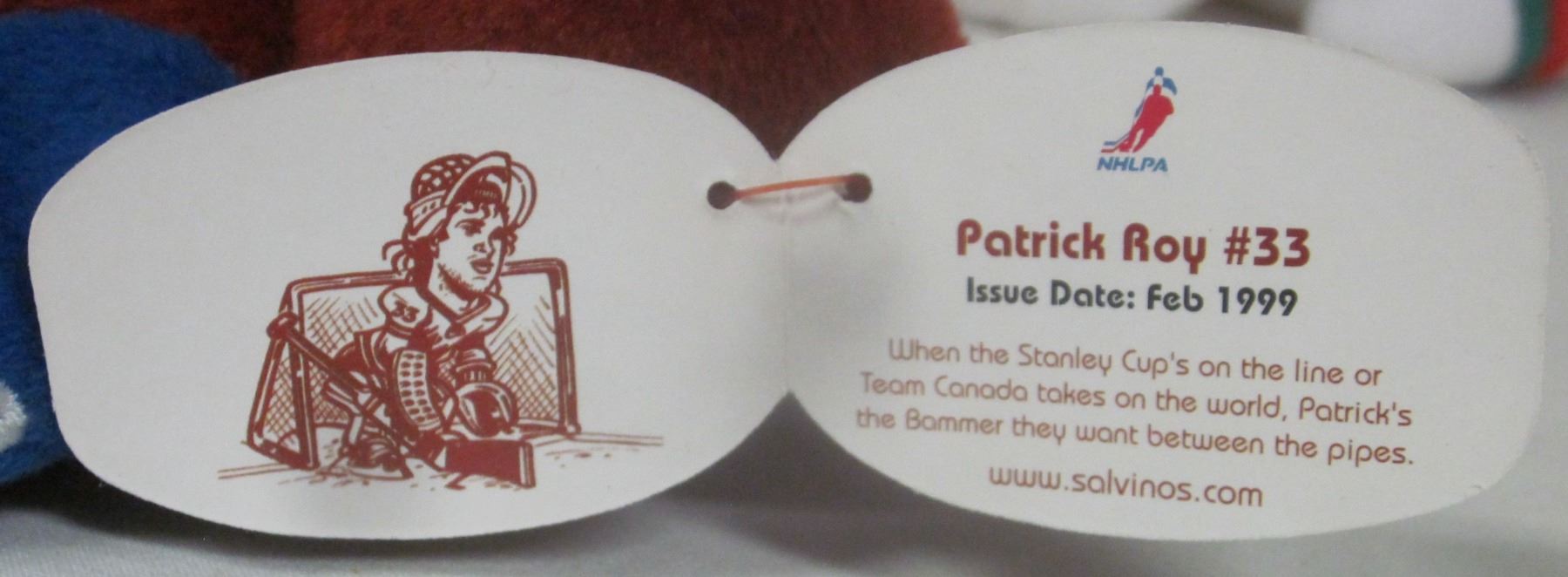 1999 Salvino Bammers 9" Plush NHL Beav - #33 Patrick Roy / Tags