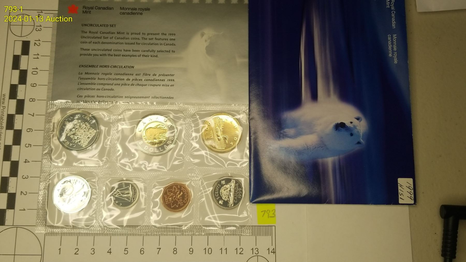 1999 Seven Coin Toonie, Loonie, Fifty Cent Piece, Quarter, Dime, Nickel, Penny Set