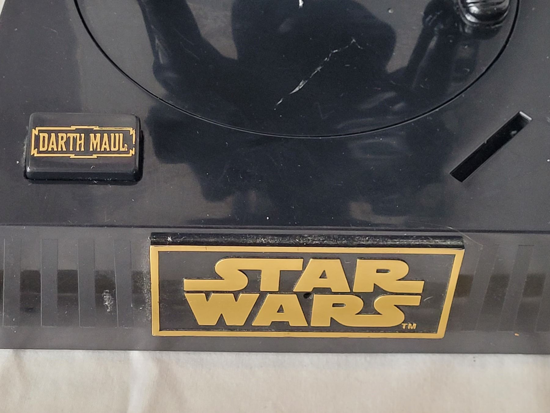 1999 Star Wars Darth Maul interactive talking coin bank. Original sound FX with combat action. Working.