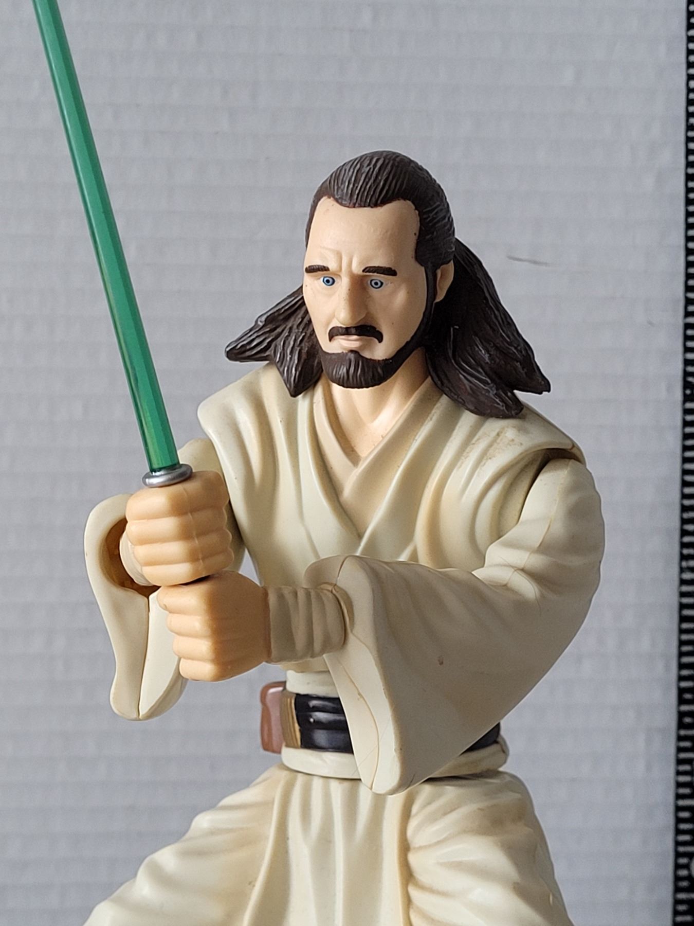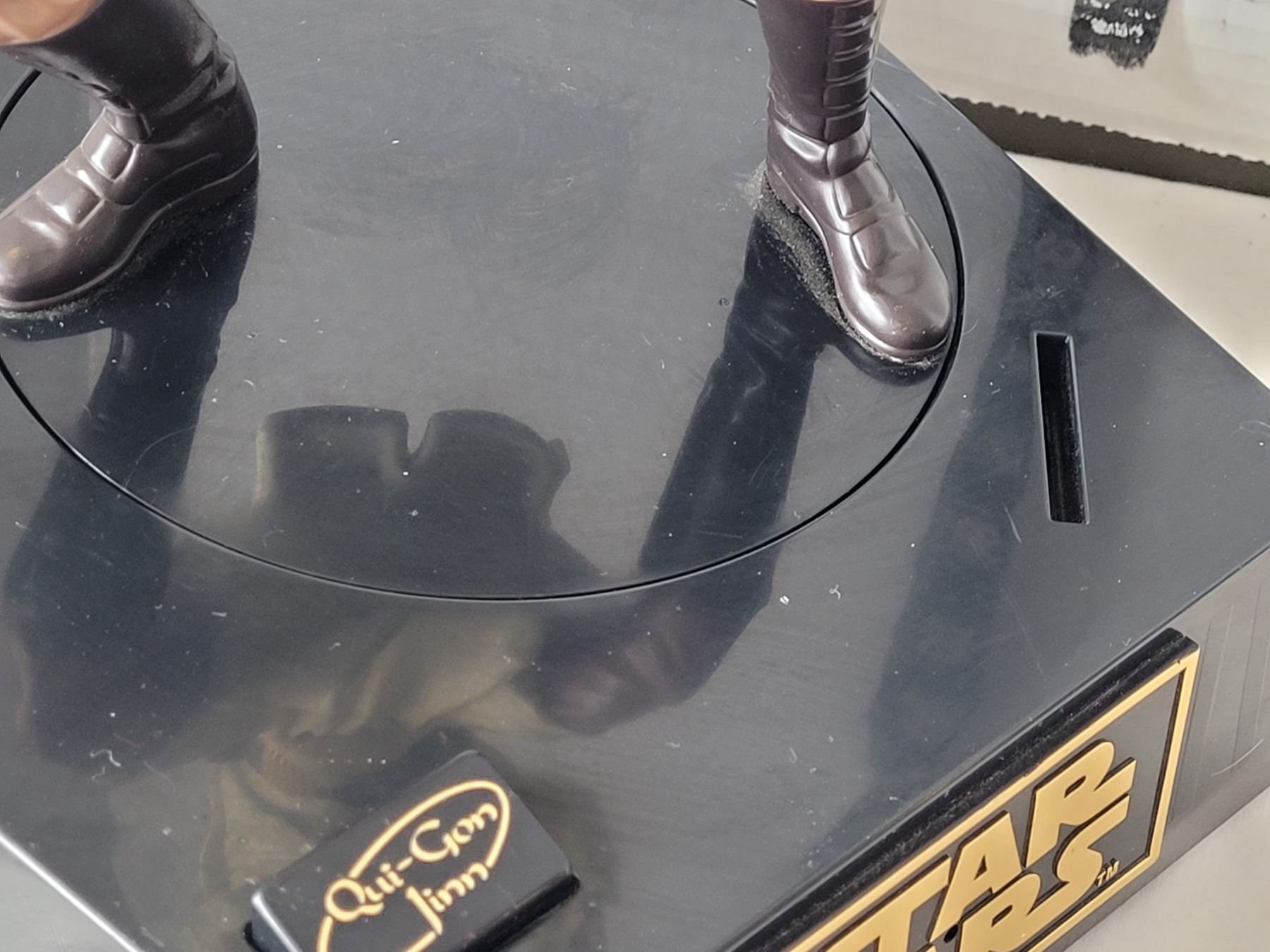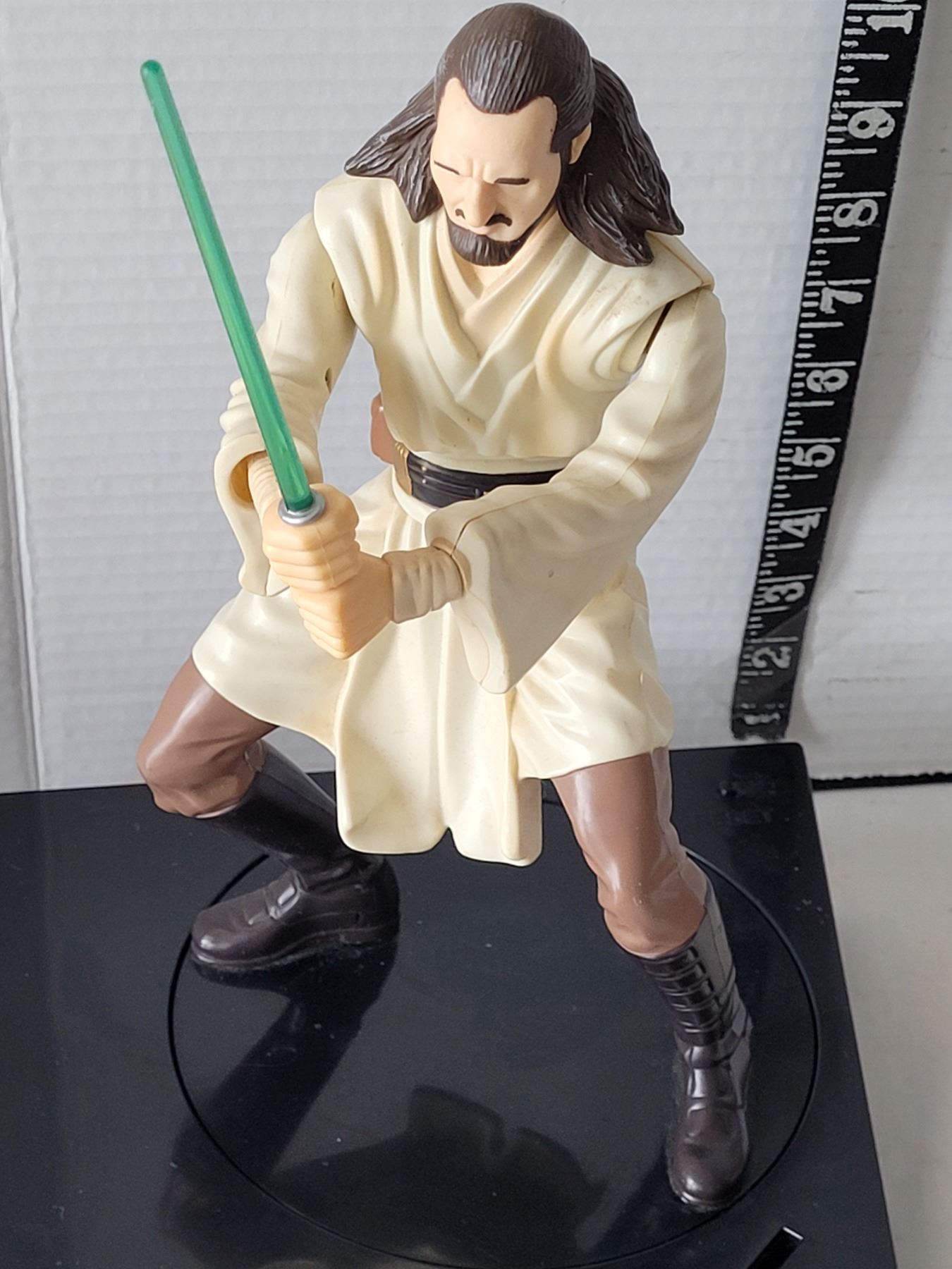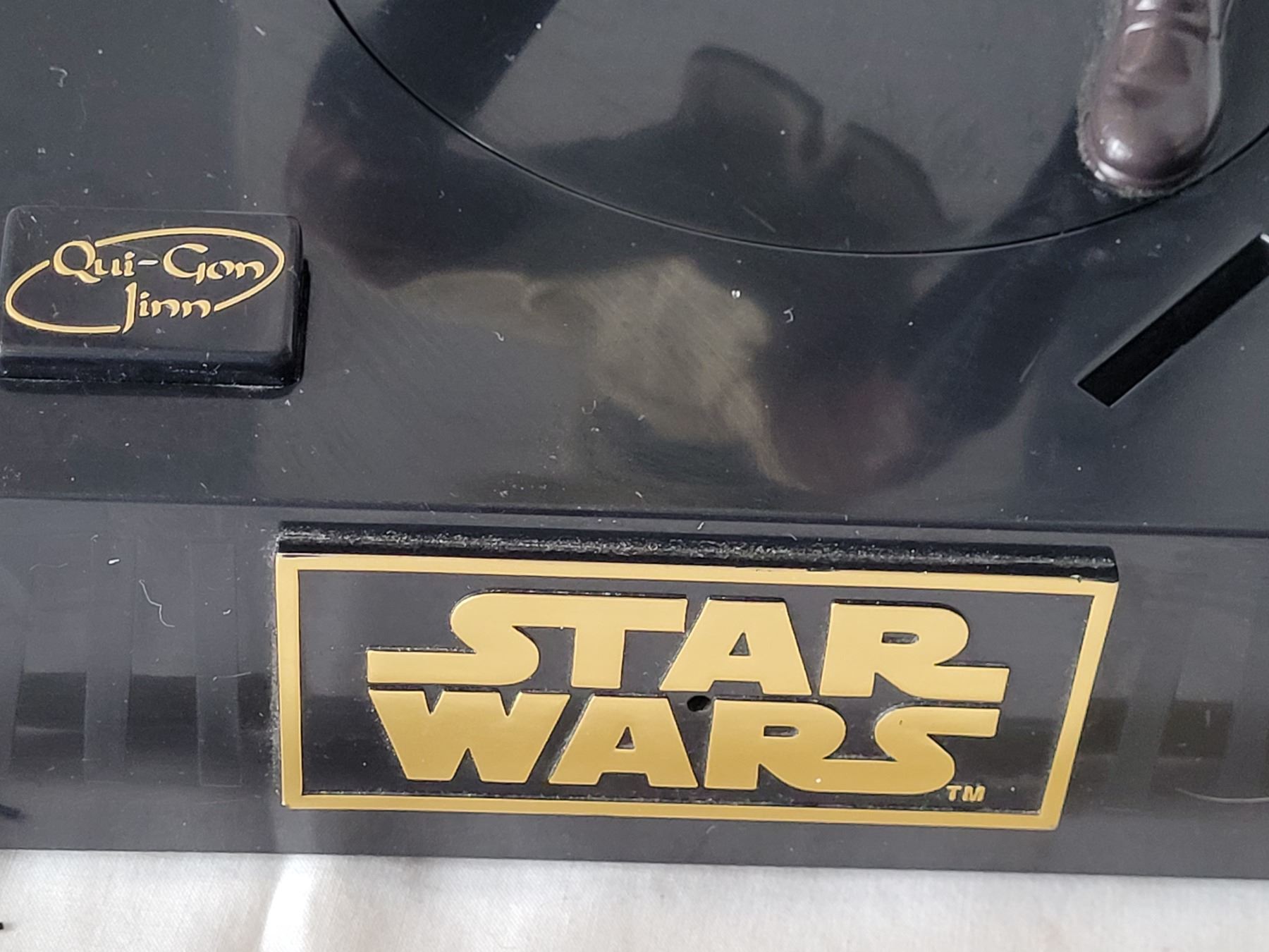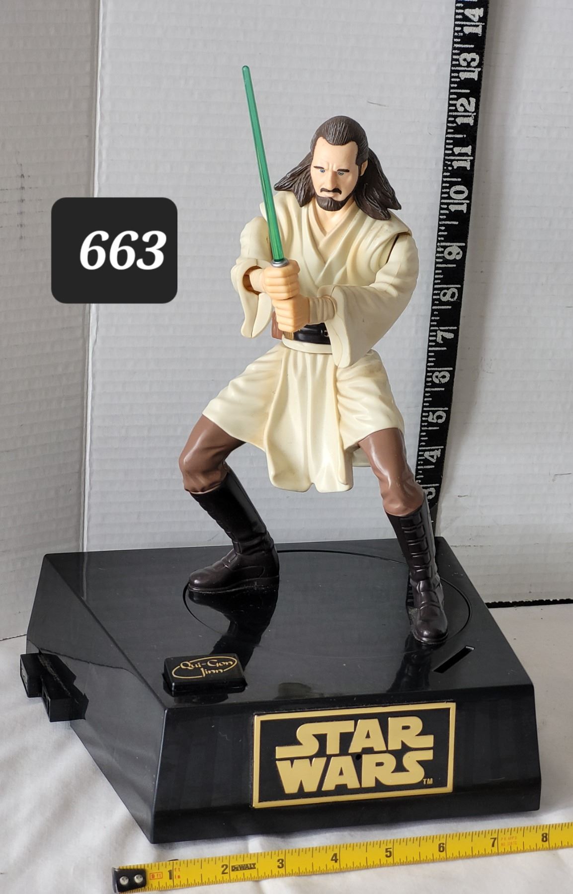1999 Star Wars Qui-Gon Jinn interactive talking coin bank. Original sound, speaks phrases with combat action. Working