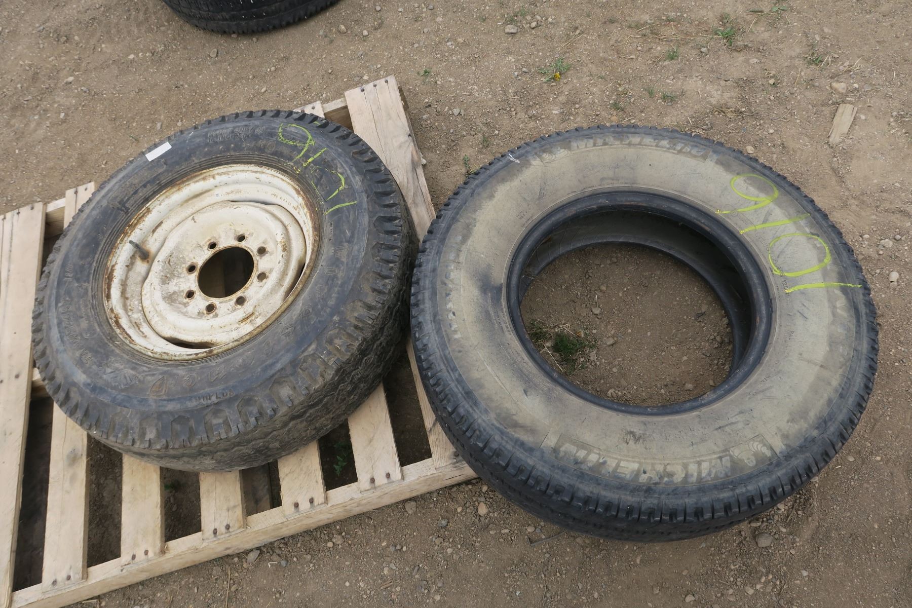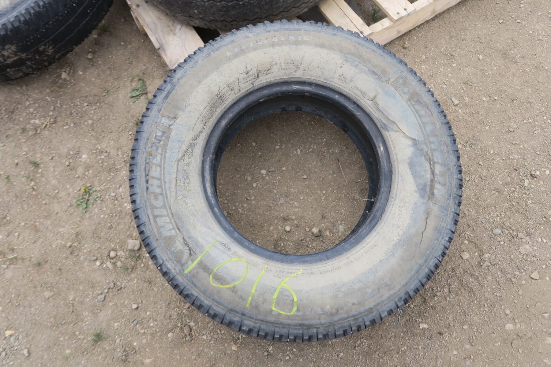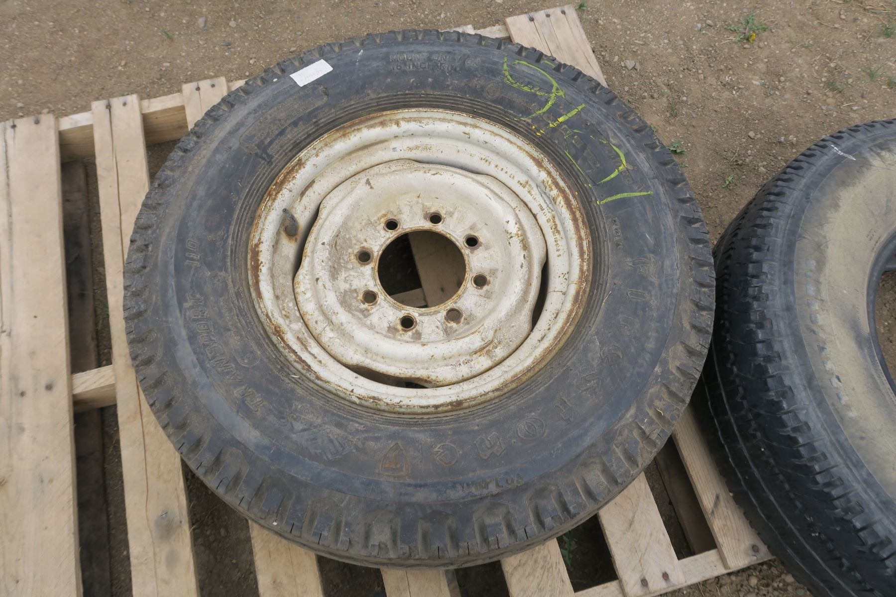 1X 8 Bolt Rim and 3 Tires - Firestone 7.50-16LT - Michelin LT235/85R16 120/116R M+S - Michelin LT235/85R16 120/116R
