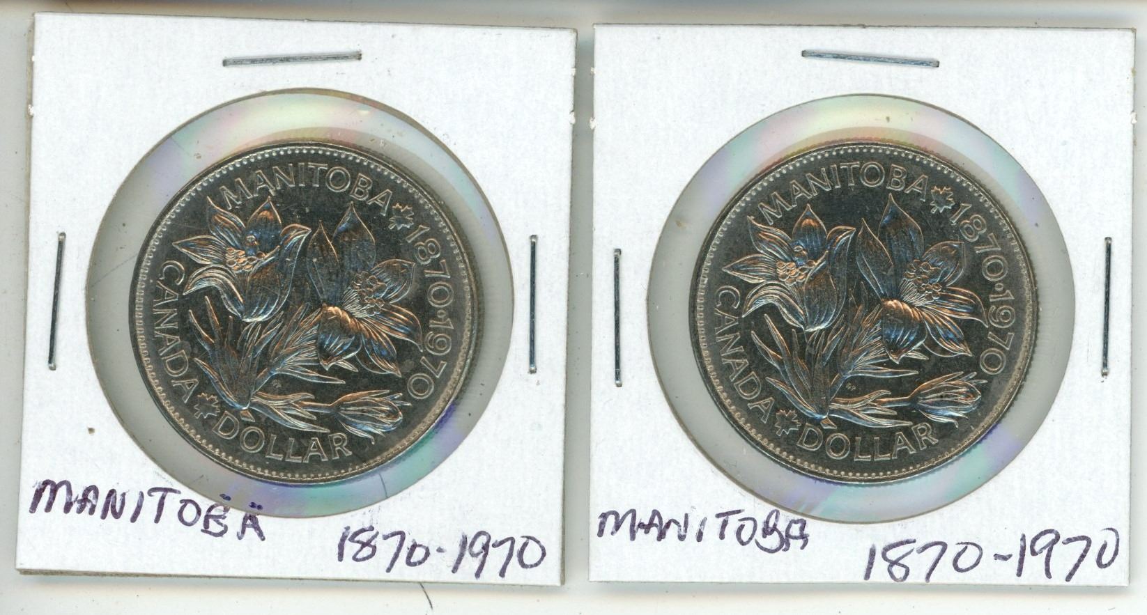 2 - 1870-1970 Canadian Manitboba 1 dollar coins