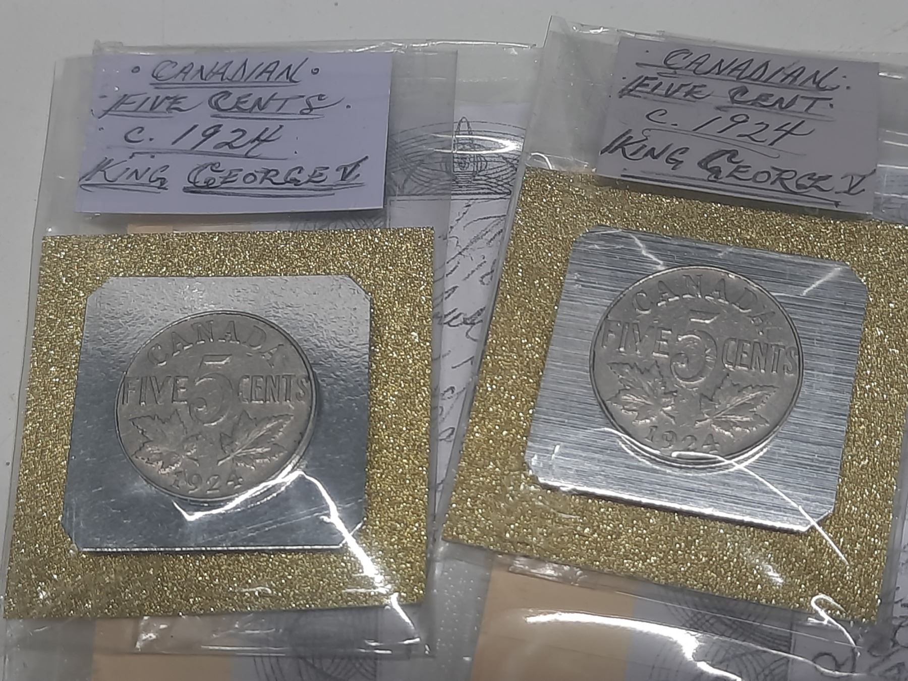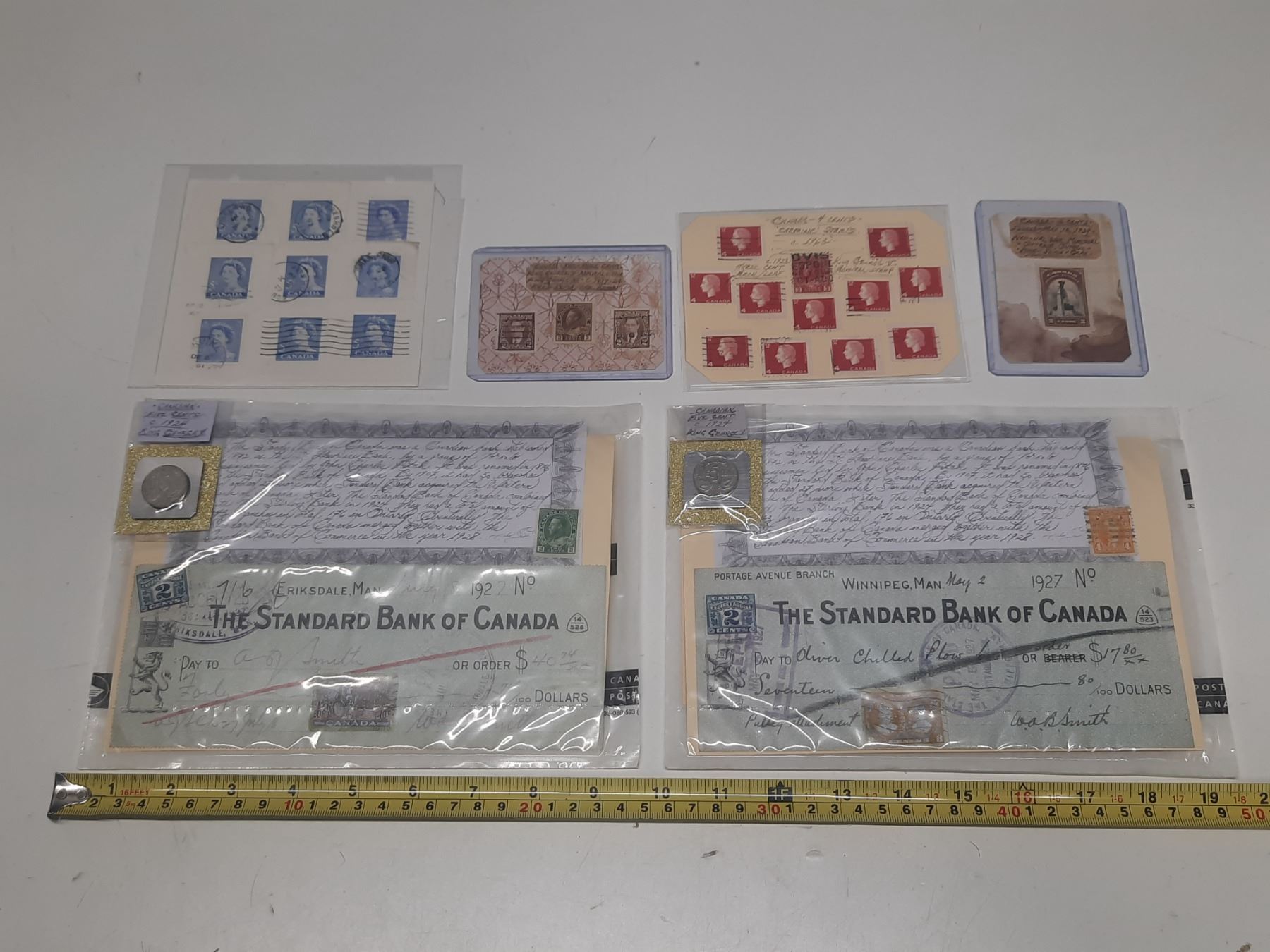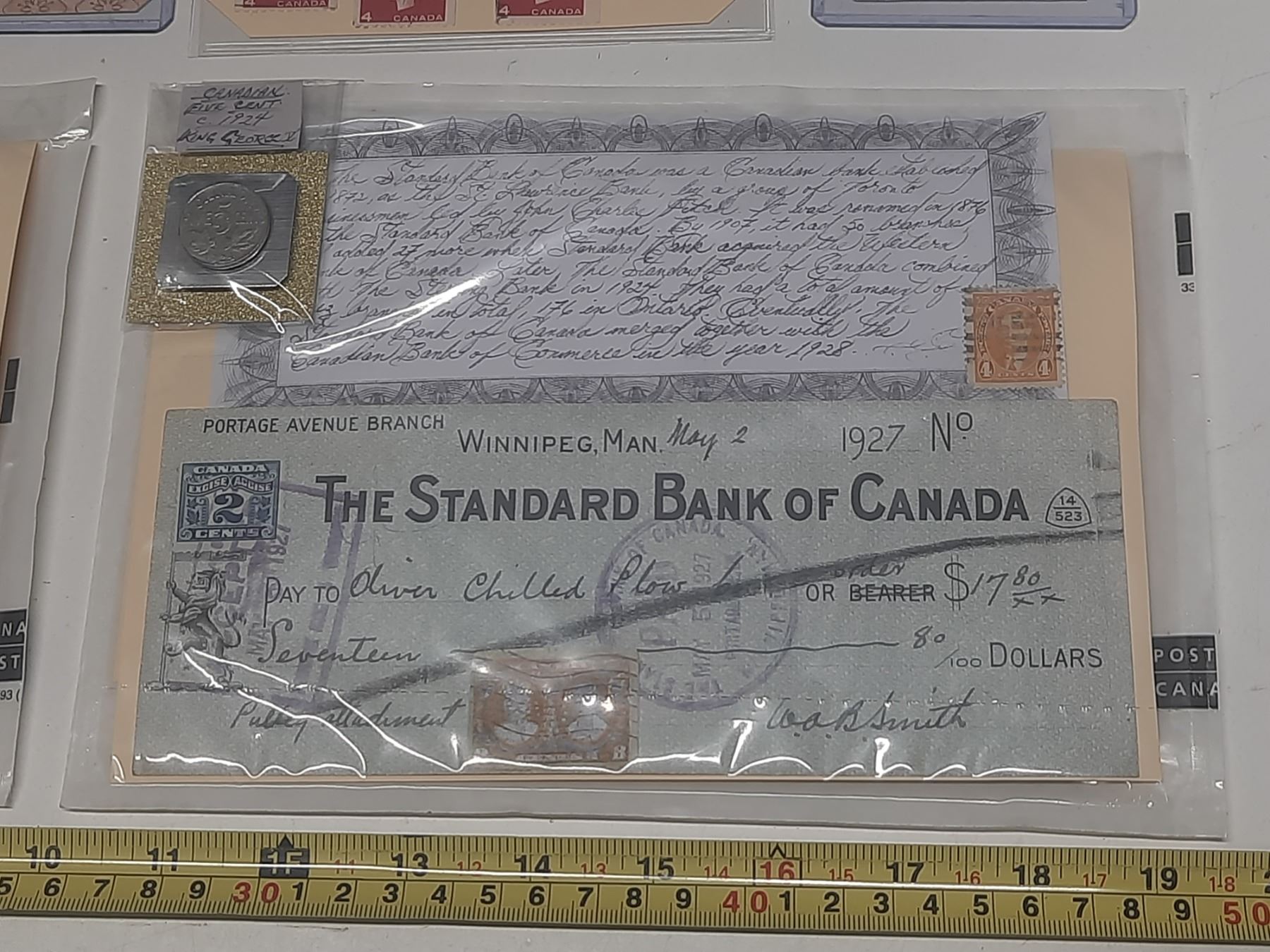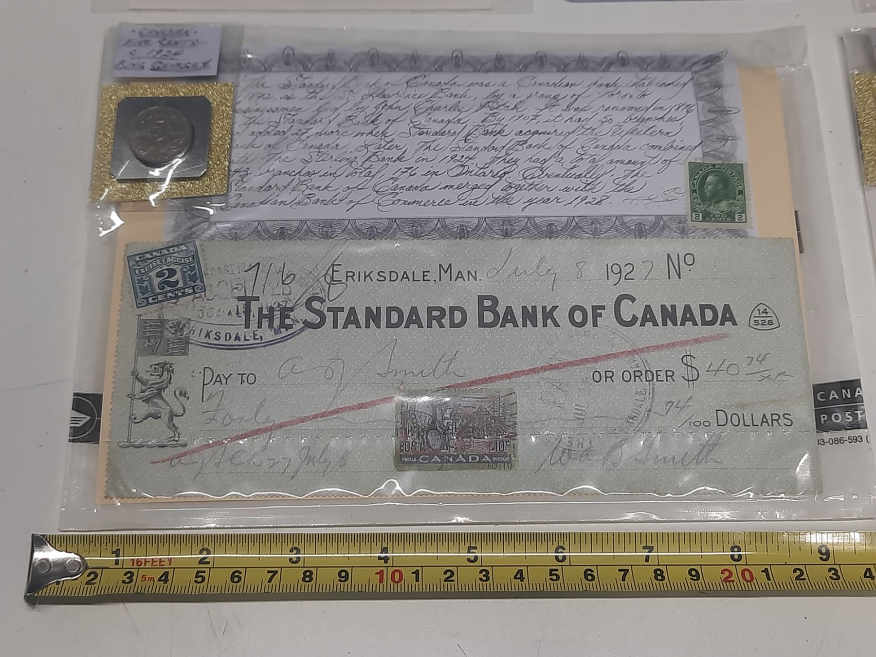 (2) 1924 Canada 5 Cents, The Standard Bank of Canada Cheque, Stamps, etc.