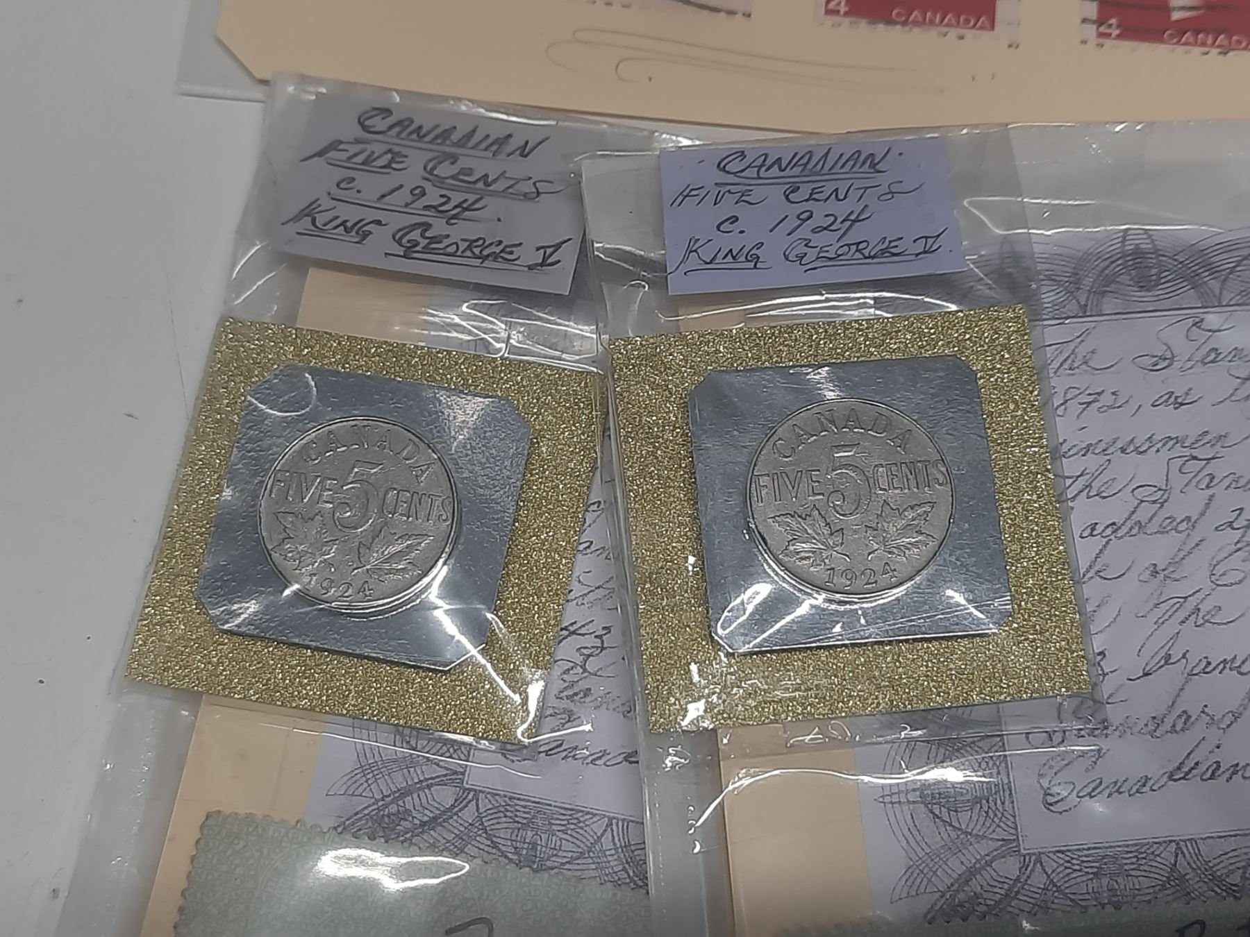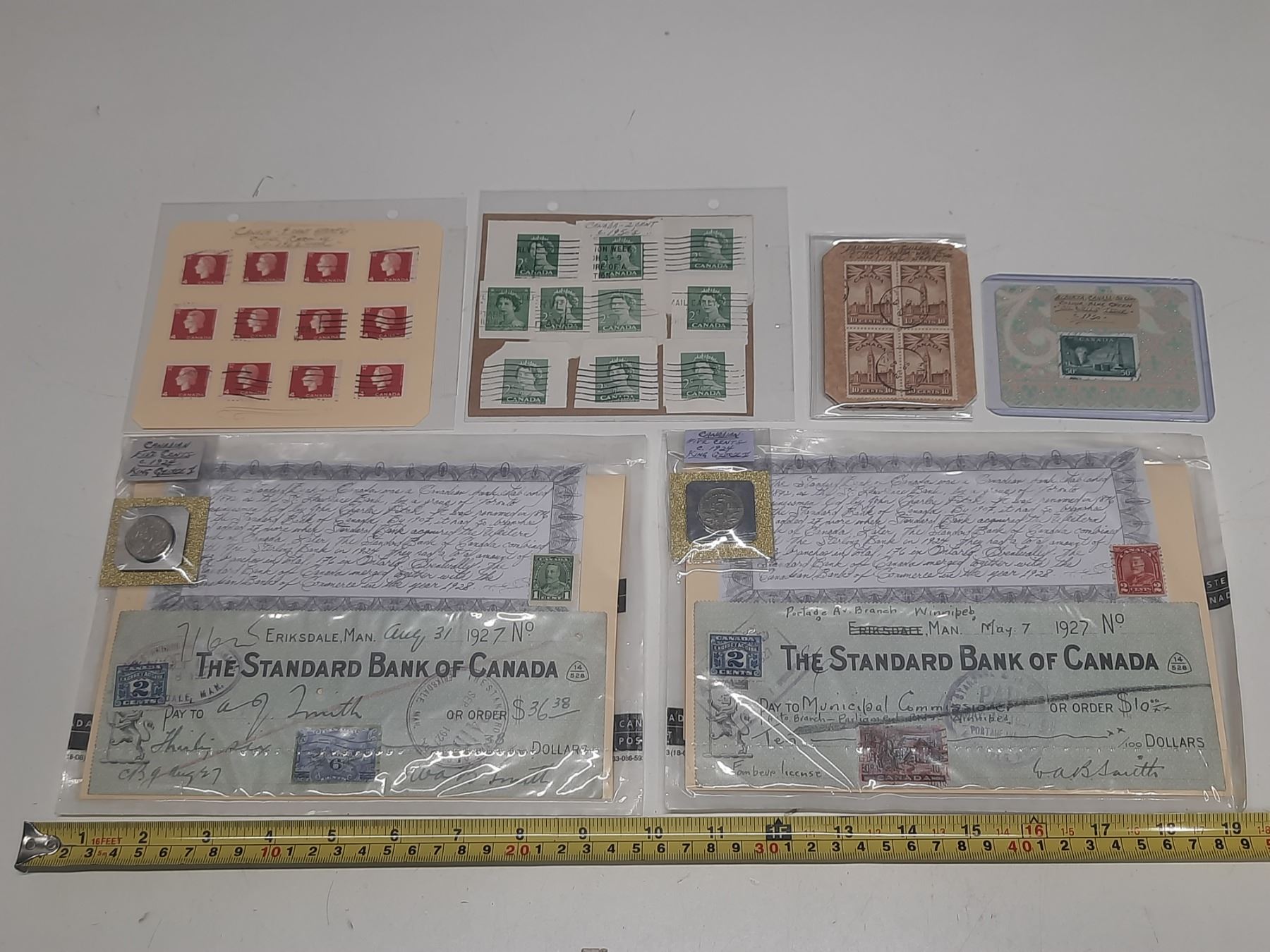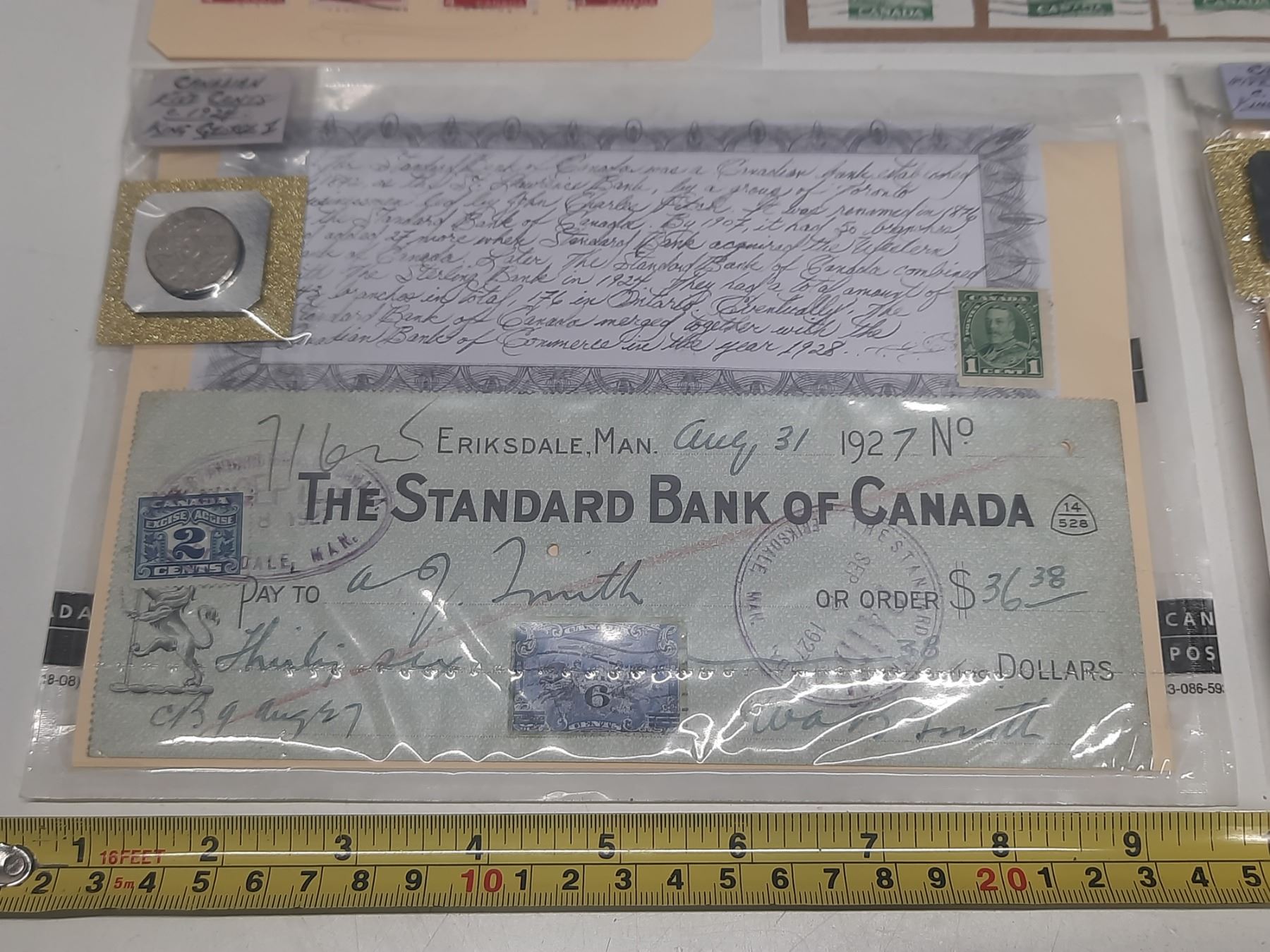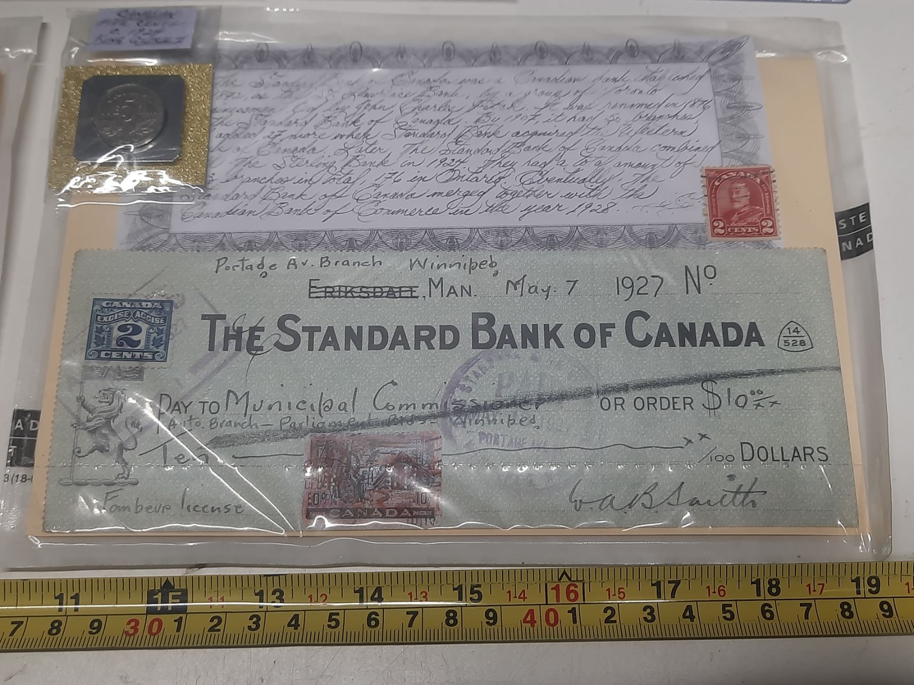 (2) 1924 Canada 5 Cents, The Standard Bank of Canada Cheque, Stamps, etc.
