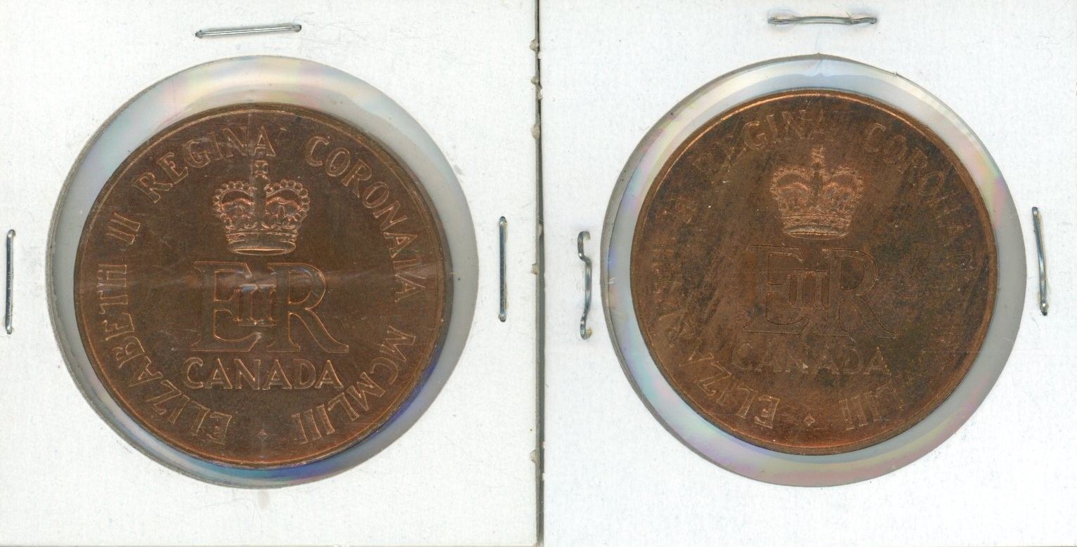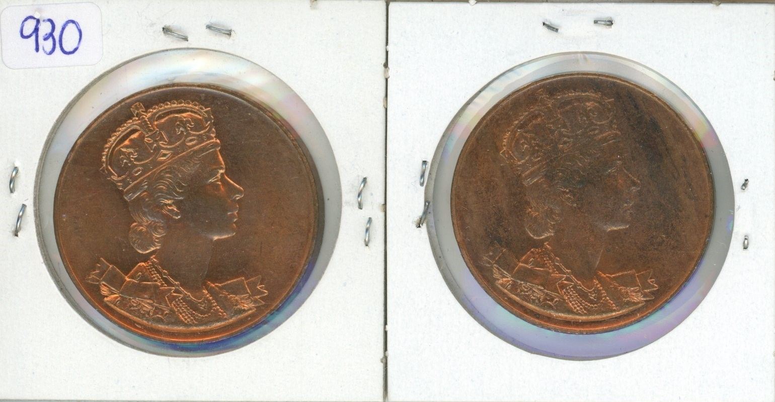 2- 1953 Canadian Queen Elizabeth Coronation Medallions unc