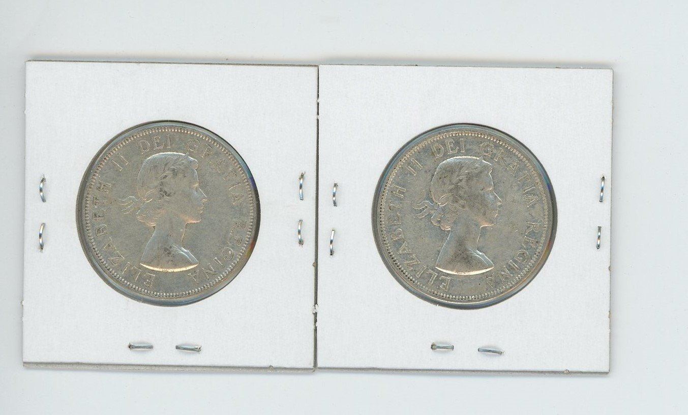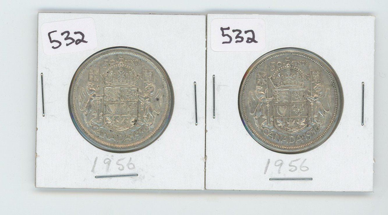 (2) 1956AU-50- CANADIAN SILVER 50 CENT
