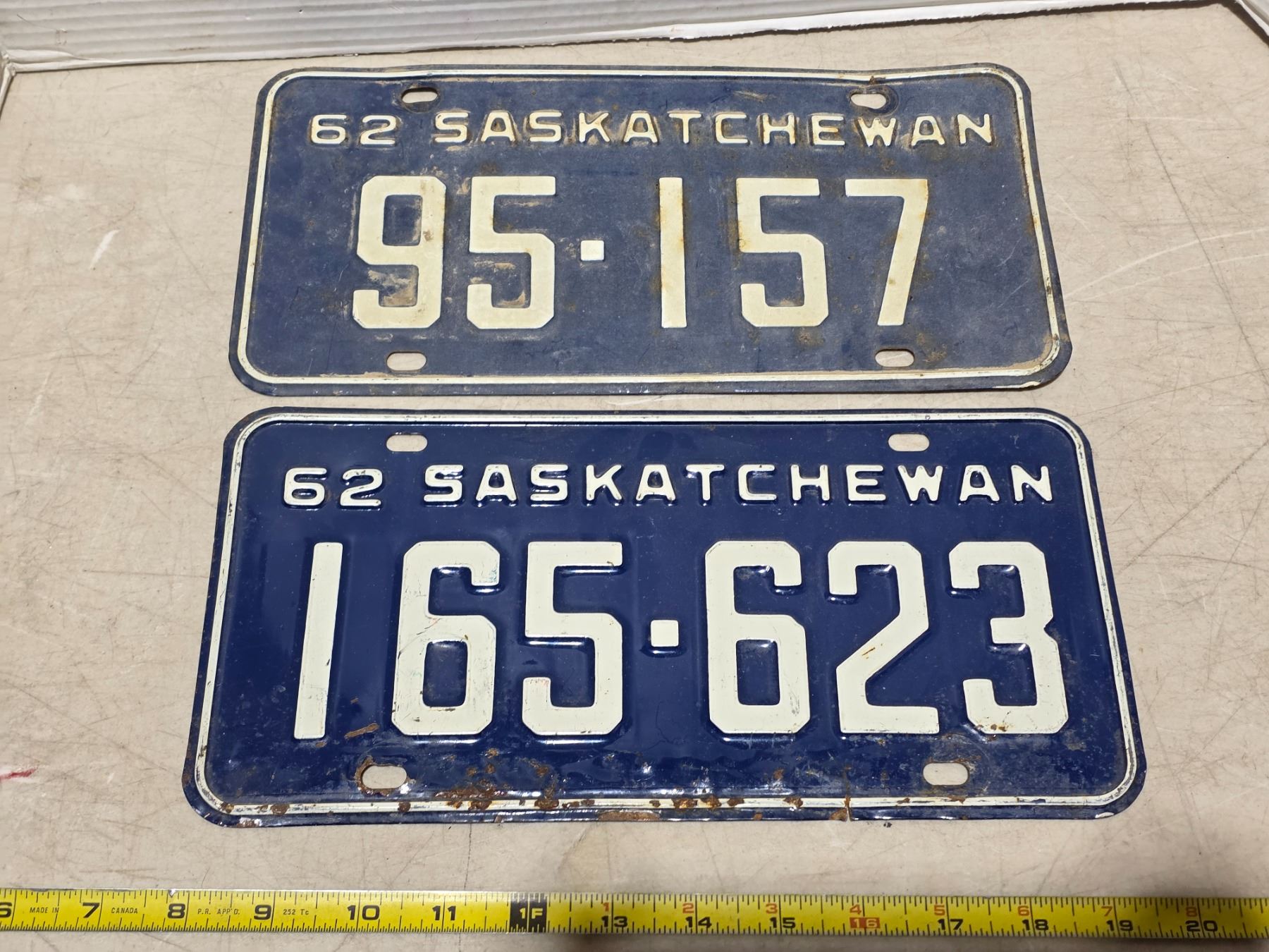 (2) 1962 Sask license plates