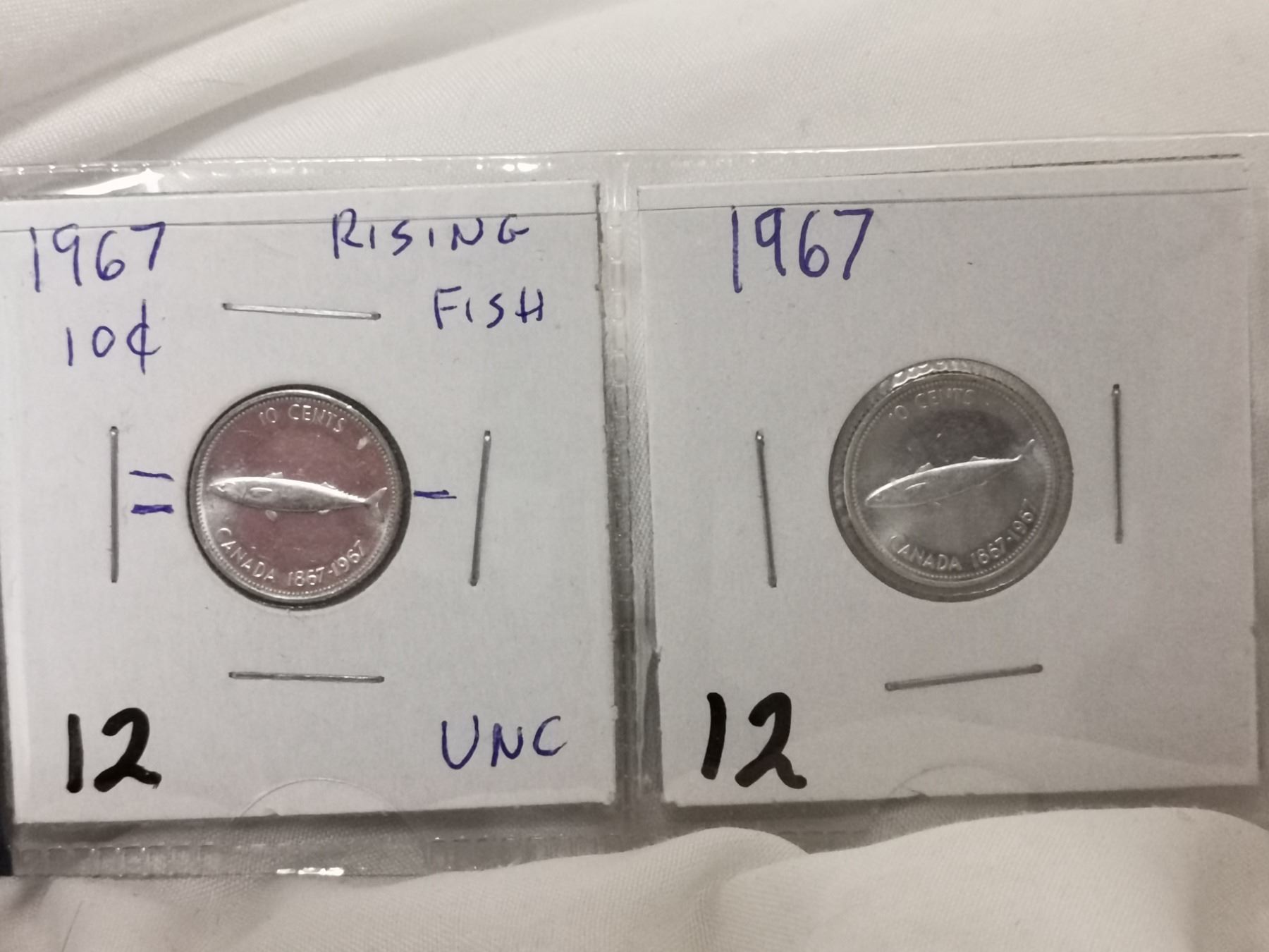 (2) 1967 Canada Silver 10 Cent coins inc. Rising Fish