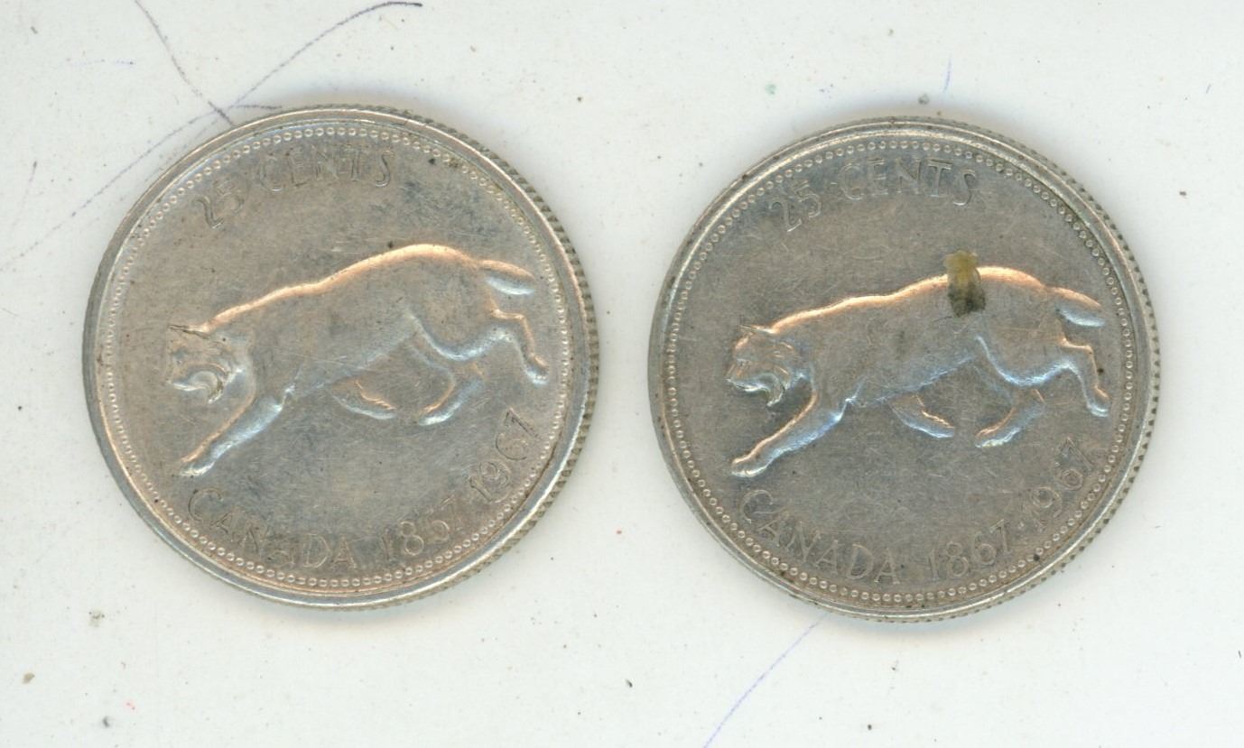 2 - 1967 Canadian Lynx 25 cent coins
