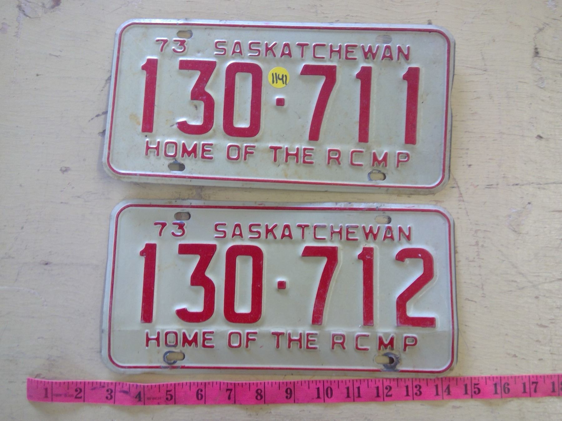 2- 1973 SASKATCHEWAN RCMP LICENSE PLATES (CONSECUTIVE NUMBERS)