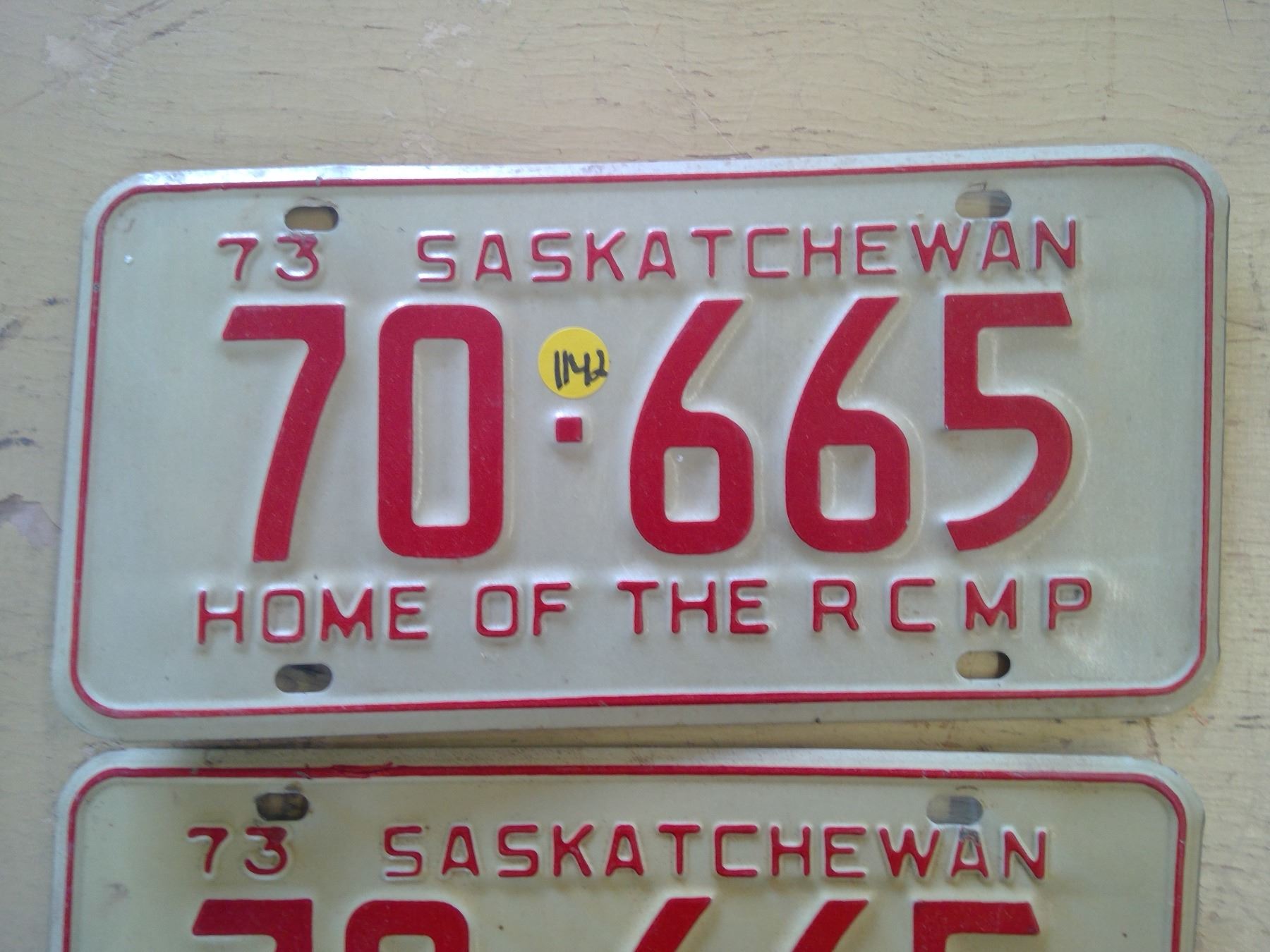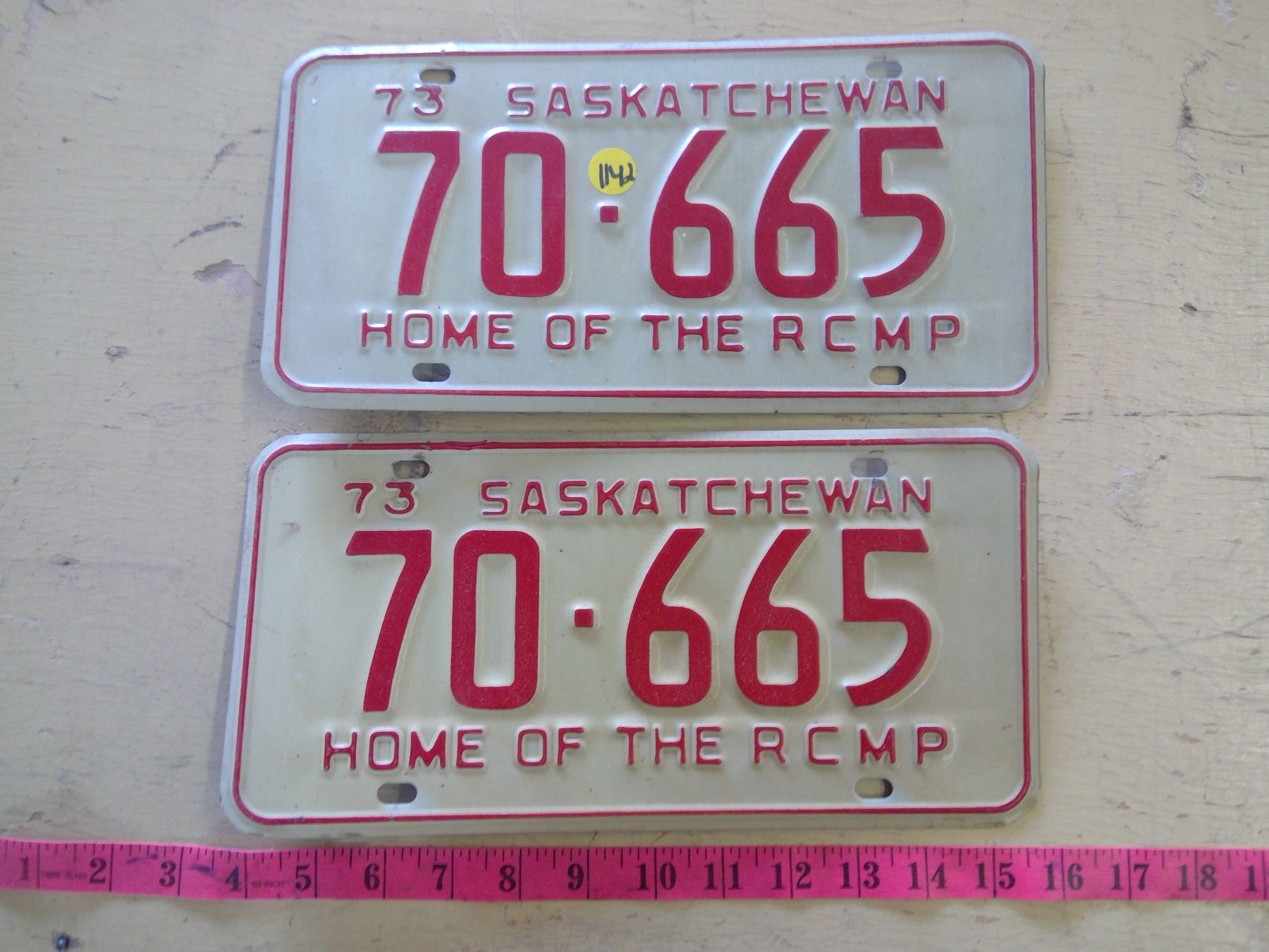 2- 1973 SASKATCHEWAN RCMP LICENSE PLATES (FRONT & BACK)