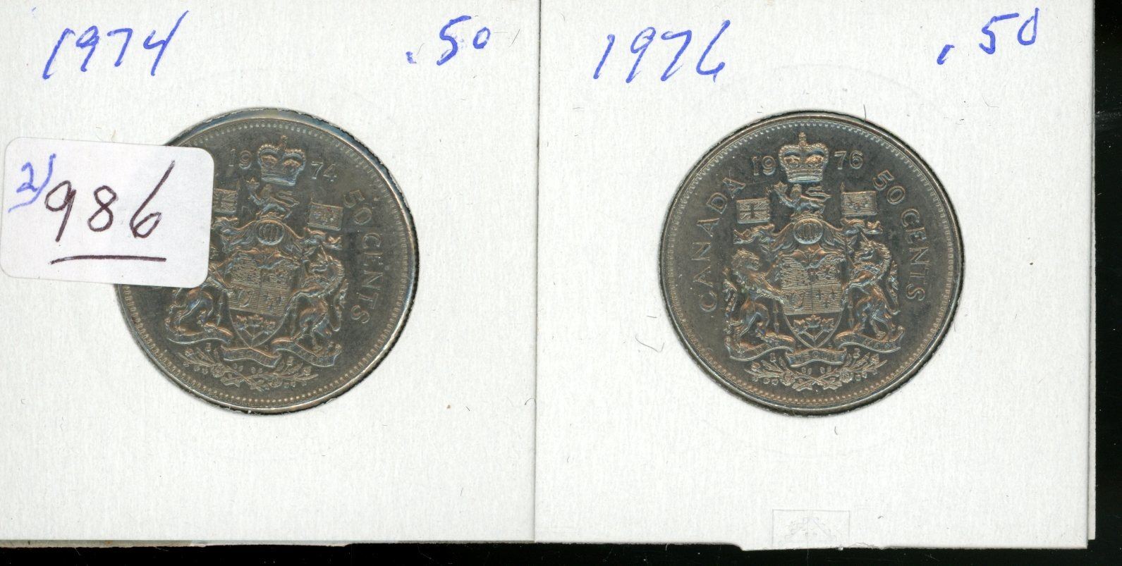 2 1974 & 1976 50 cent coins