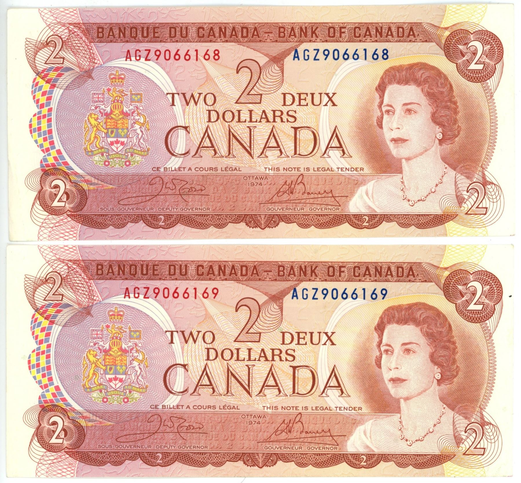 2 - 1974 $2 Bill UNC Sequence Numbered