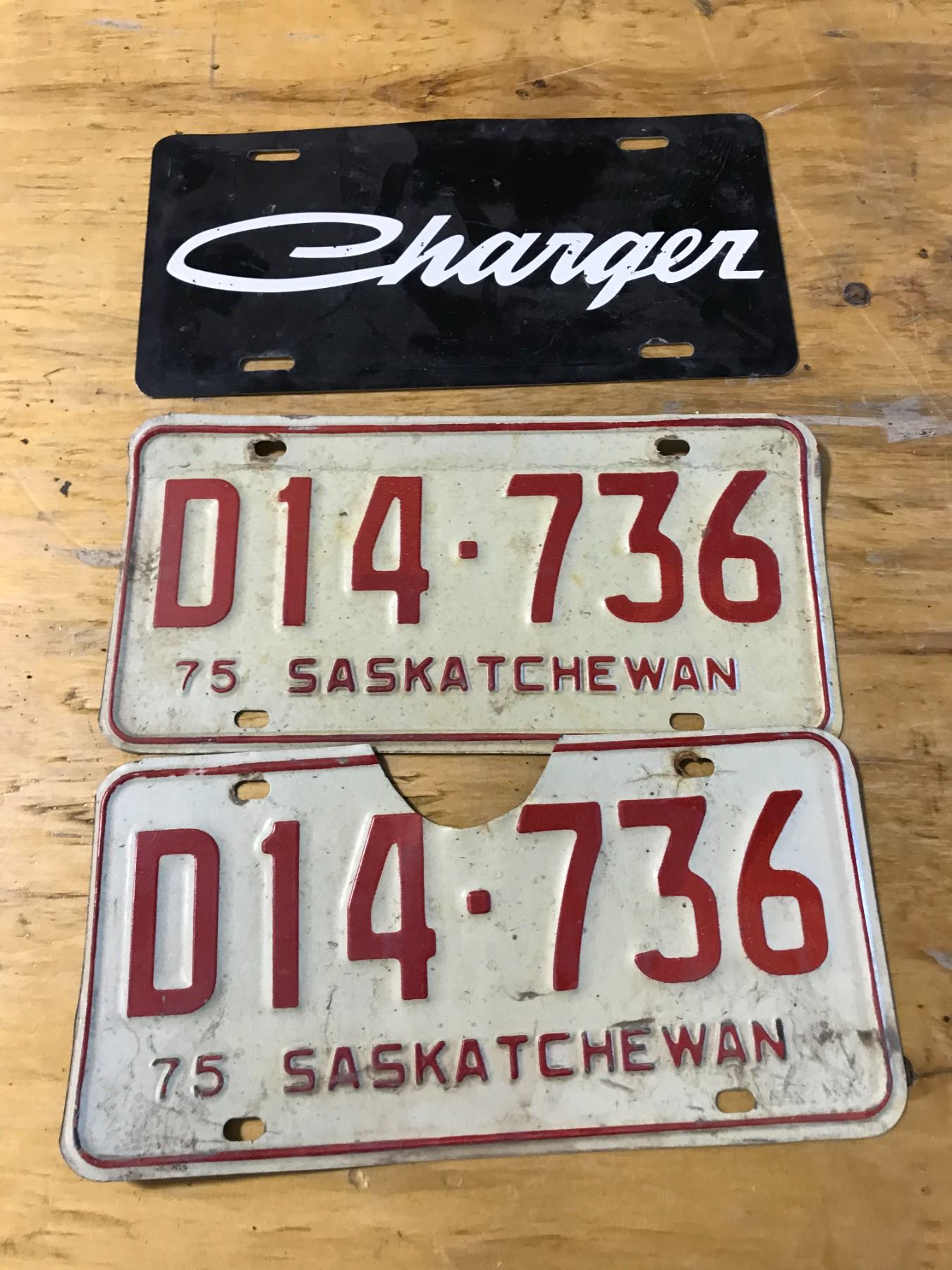2 - 1975 SASK PLATES + CHARGER PLATE