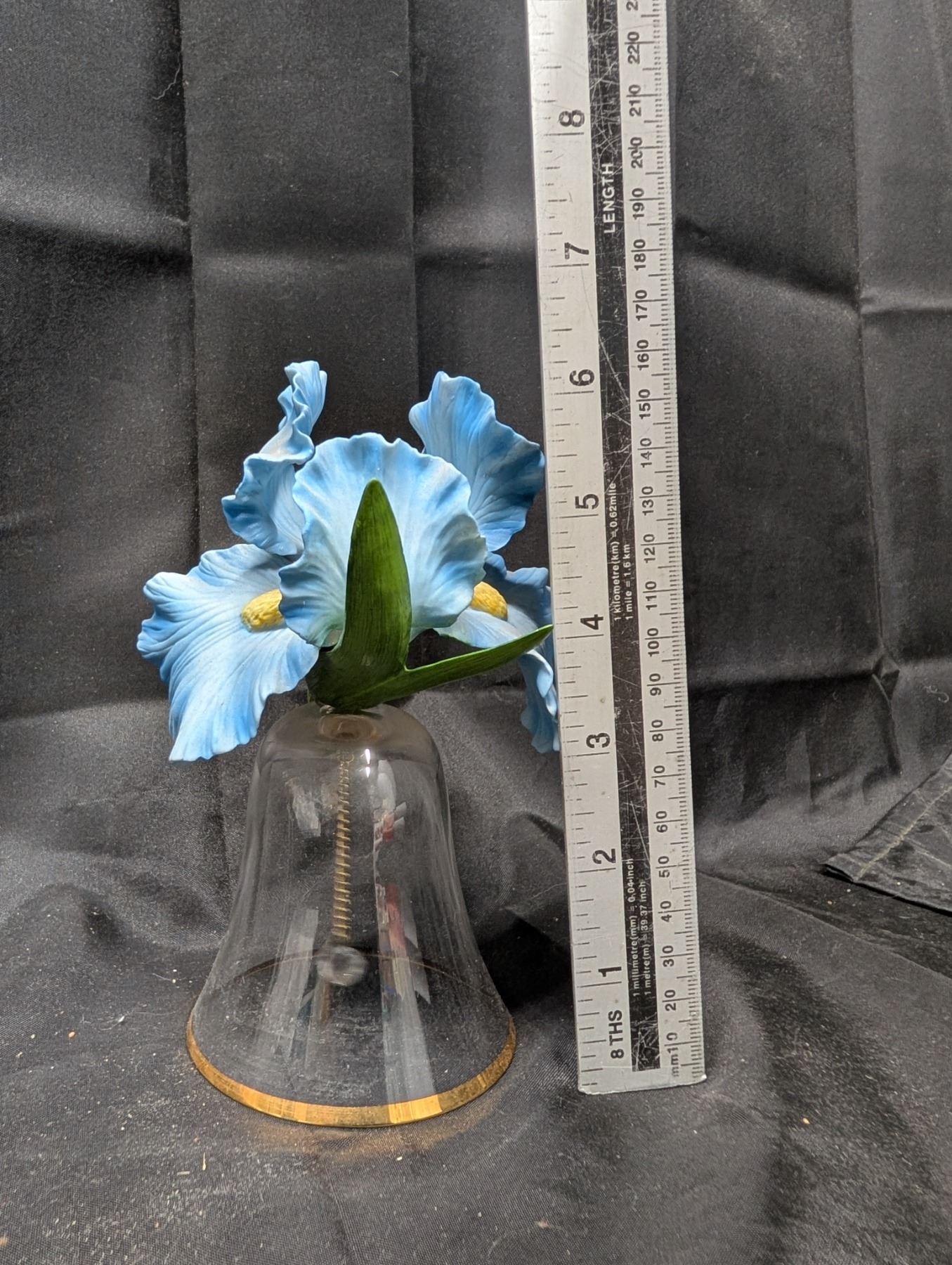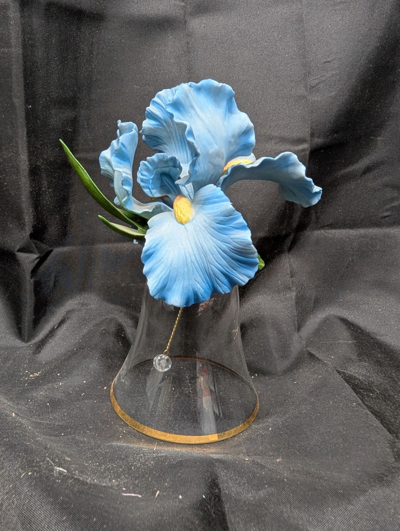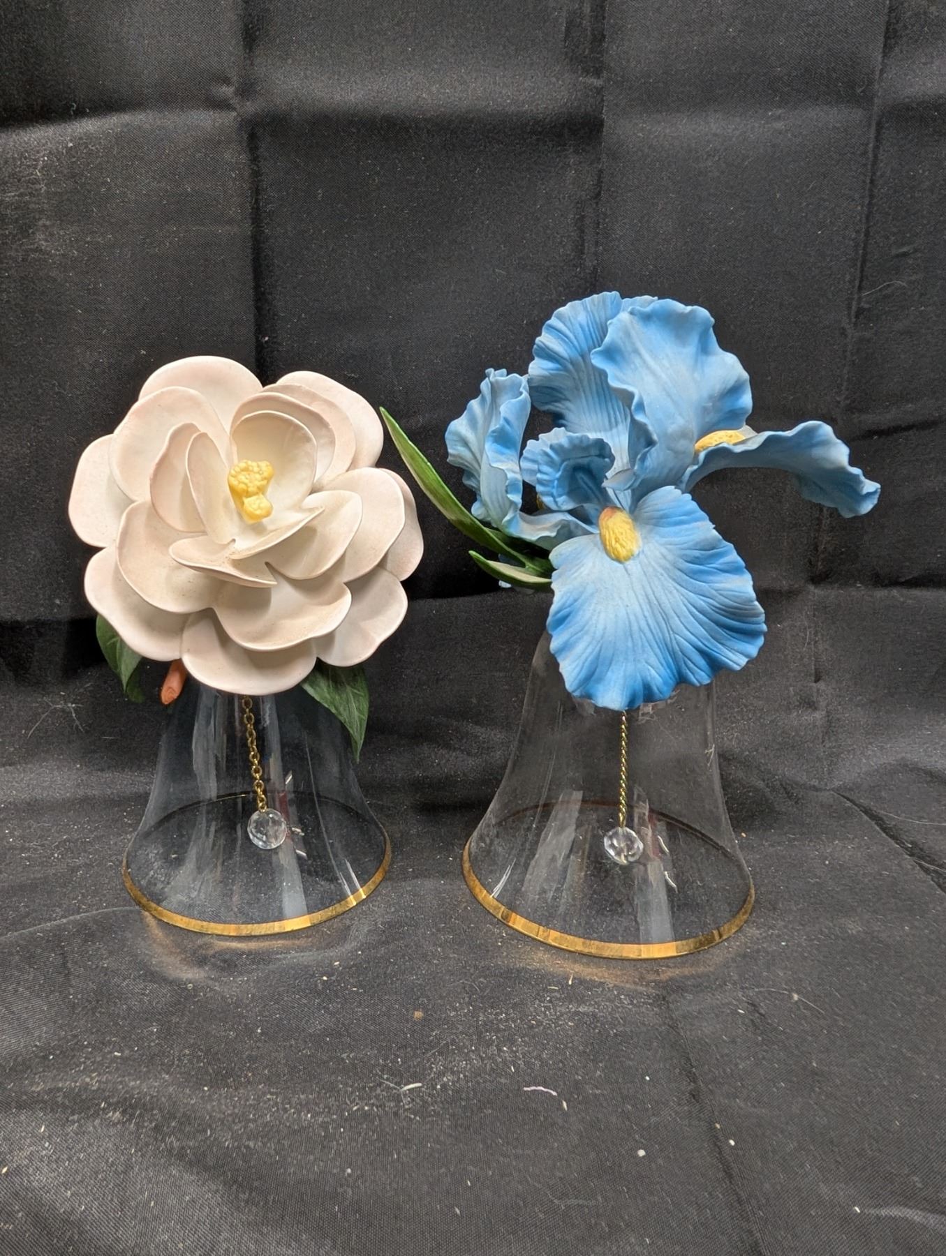 (2) 1980s Franklin Mint Crystal Bell Flowers w/24 KT gold rim