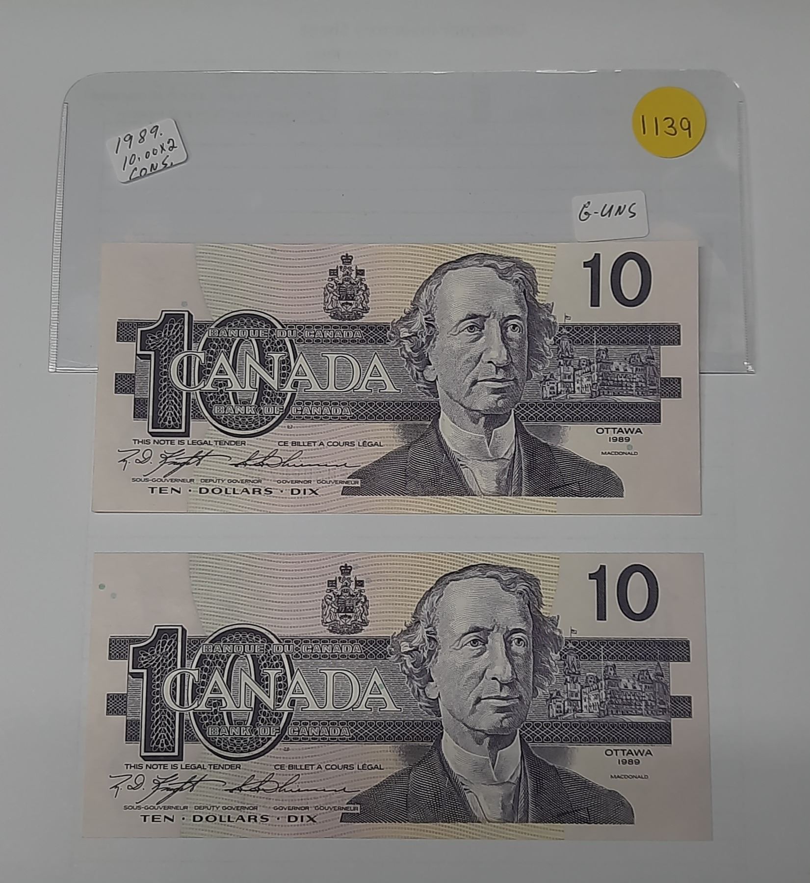 (2) 1989 Canada Ten Dollar In Sequence - Uncirculated.