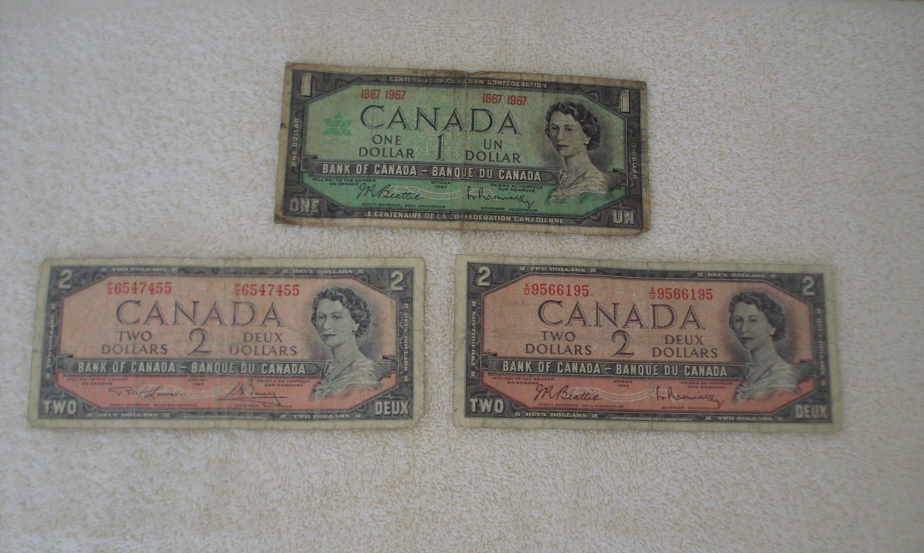 2-$2.00 bills 1 - $1.00 bill poor condition