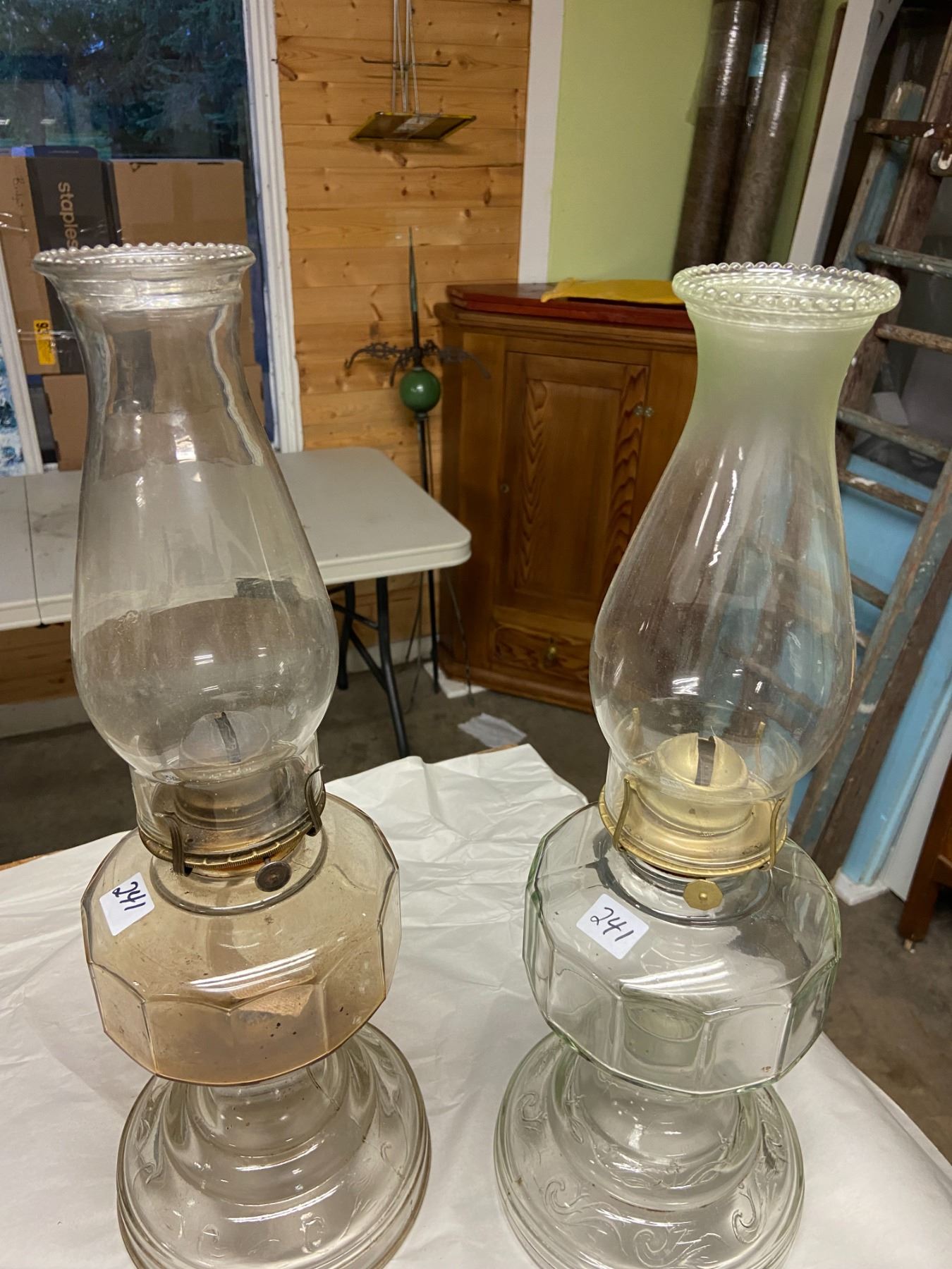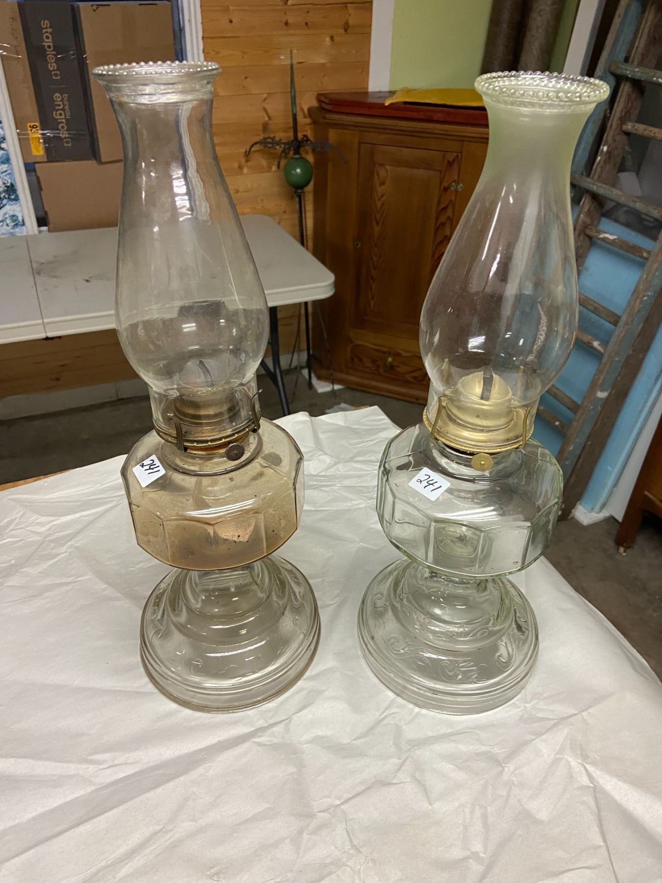 2 - #2 coal oil lamps, with chimney's