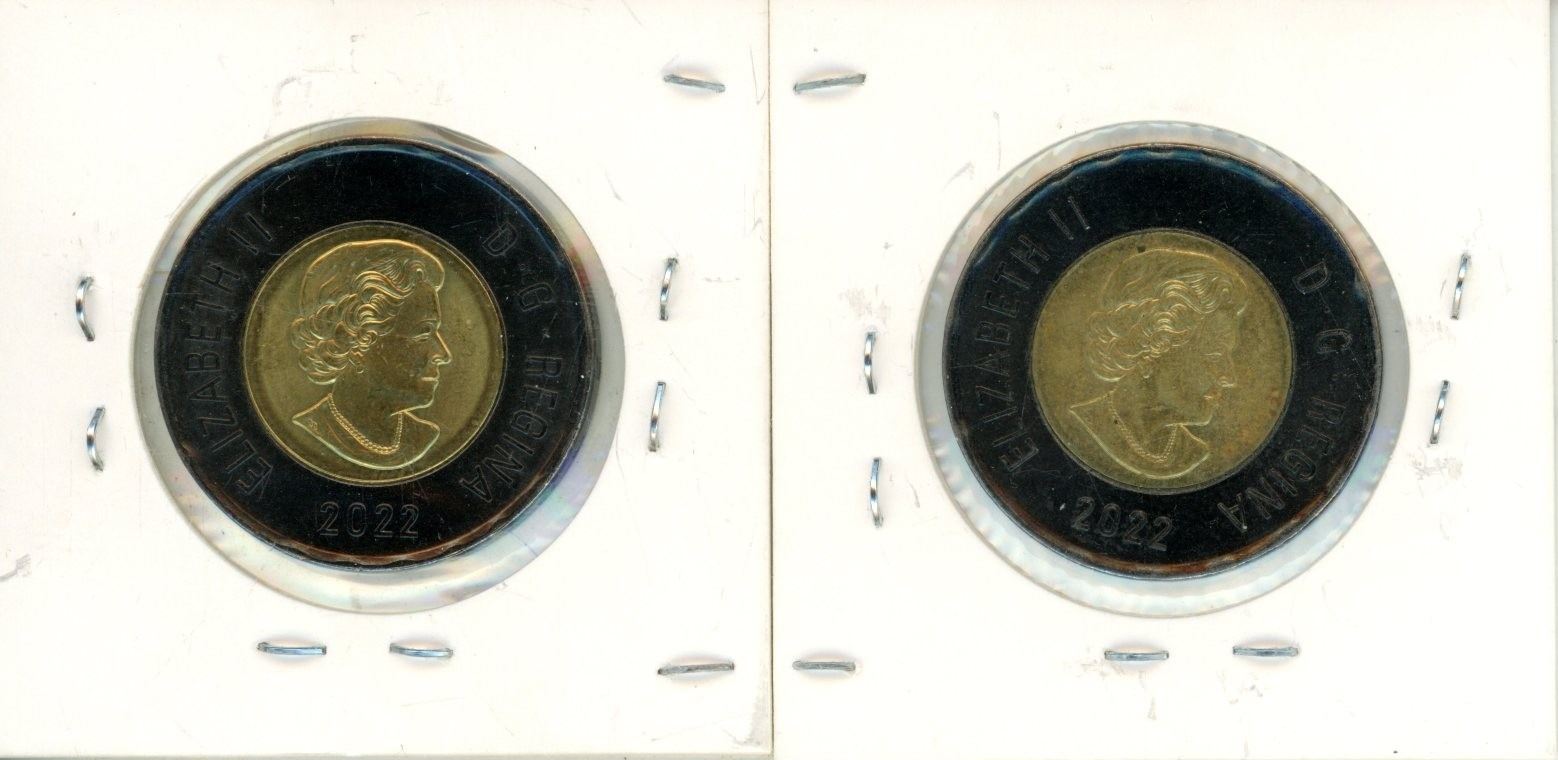 (2) 2022 Canadian Toonies, Black Rim, Farewell to the Queen