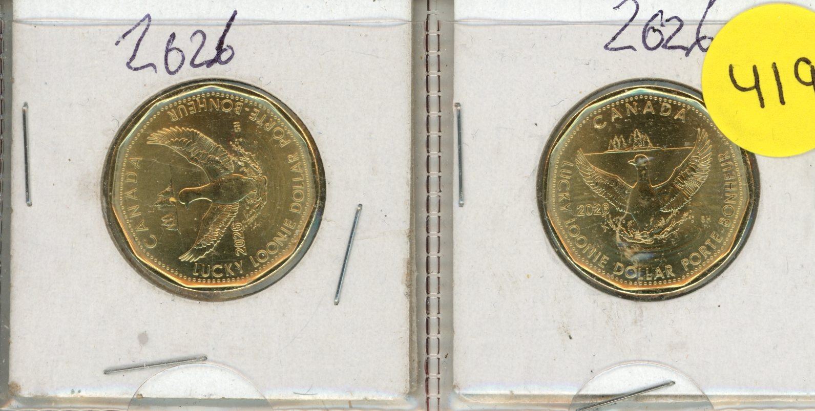 (2) 2026 Canadian "Lucky Loonie" $1 coins, which are collectible commemorative coins produced by the Royal Canadian Mint.