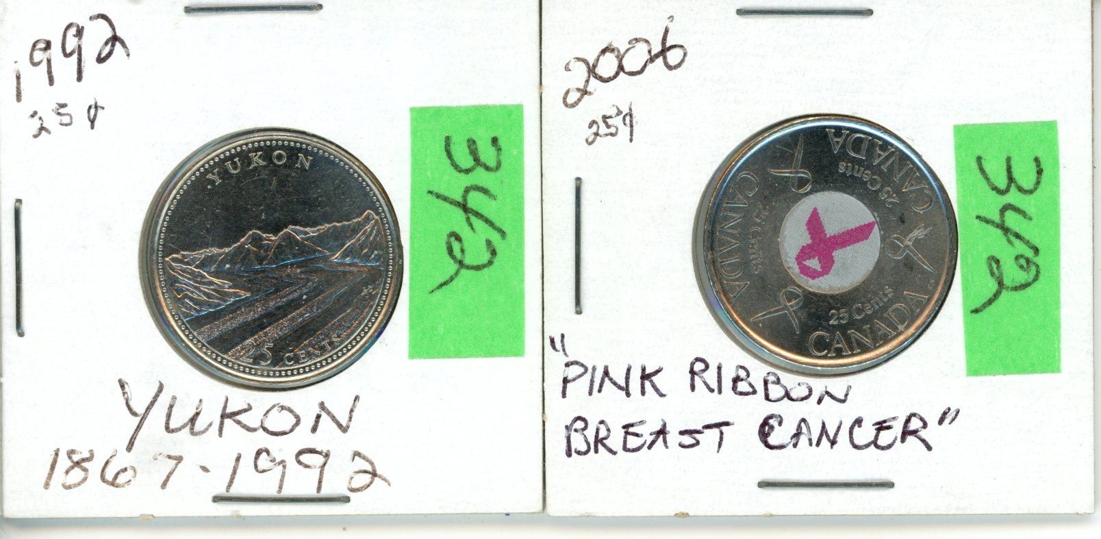 2-25¢ Pcs 1992 Yukon 1867-1992, 2006 Pink Ribbon Breast Cancer
