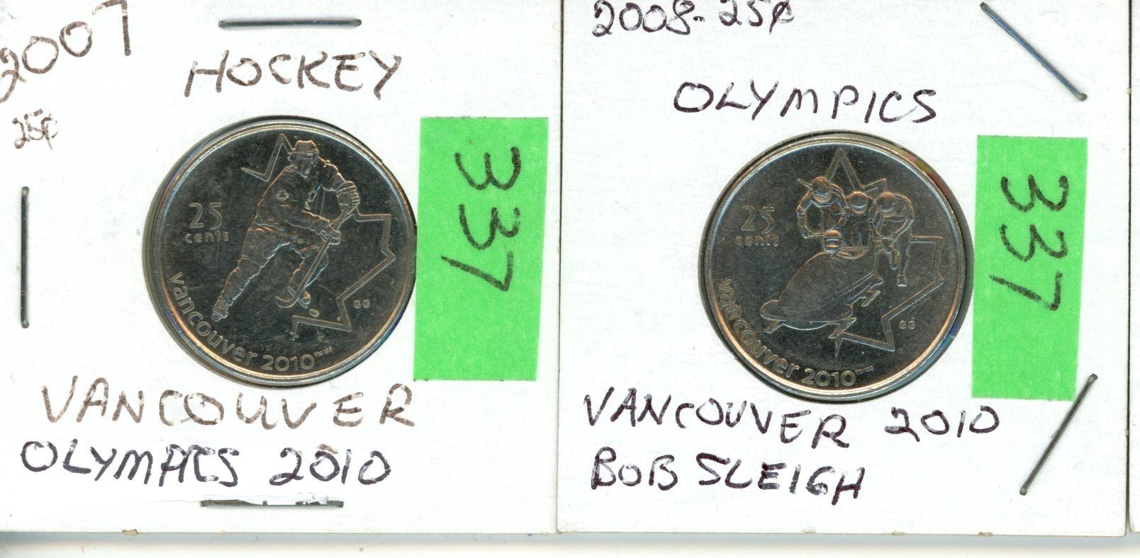 2-25¢ Pcs Vancouver Olympics; 2008 Bobsleigh, 2007 Hockey