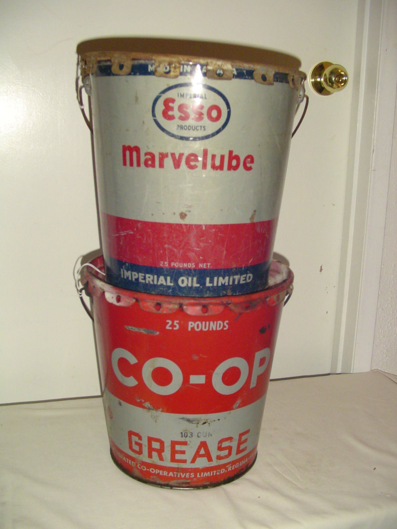 2-25lb co-op and marvelube grease pails