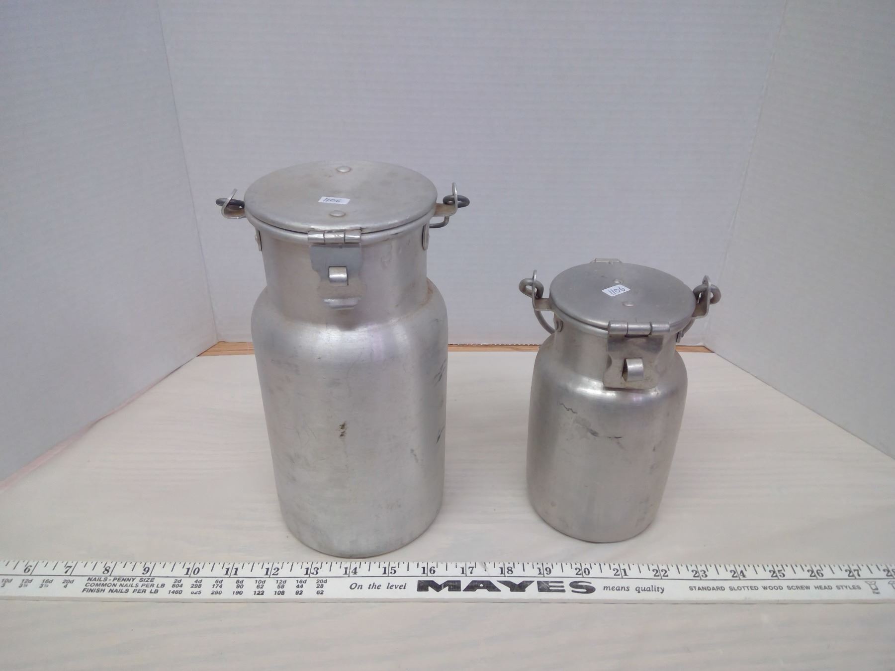 2 Aluminum Milk Canisters, 1/2 Pint, 1 Pint