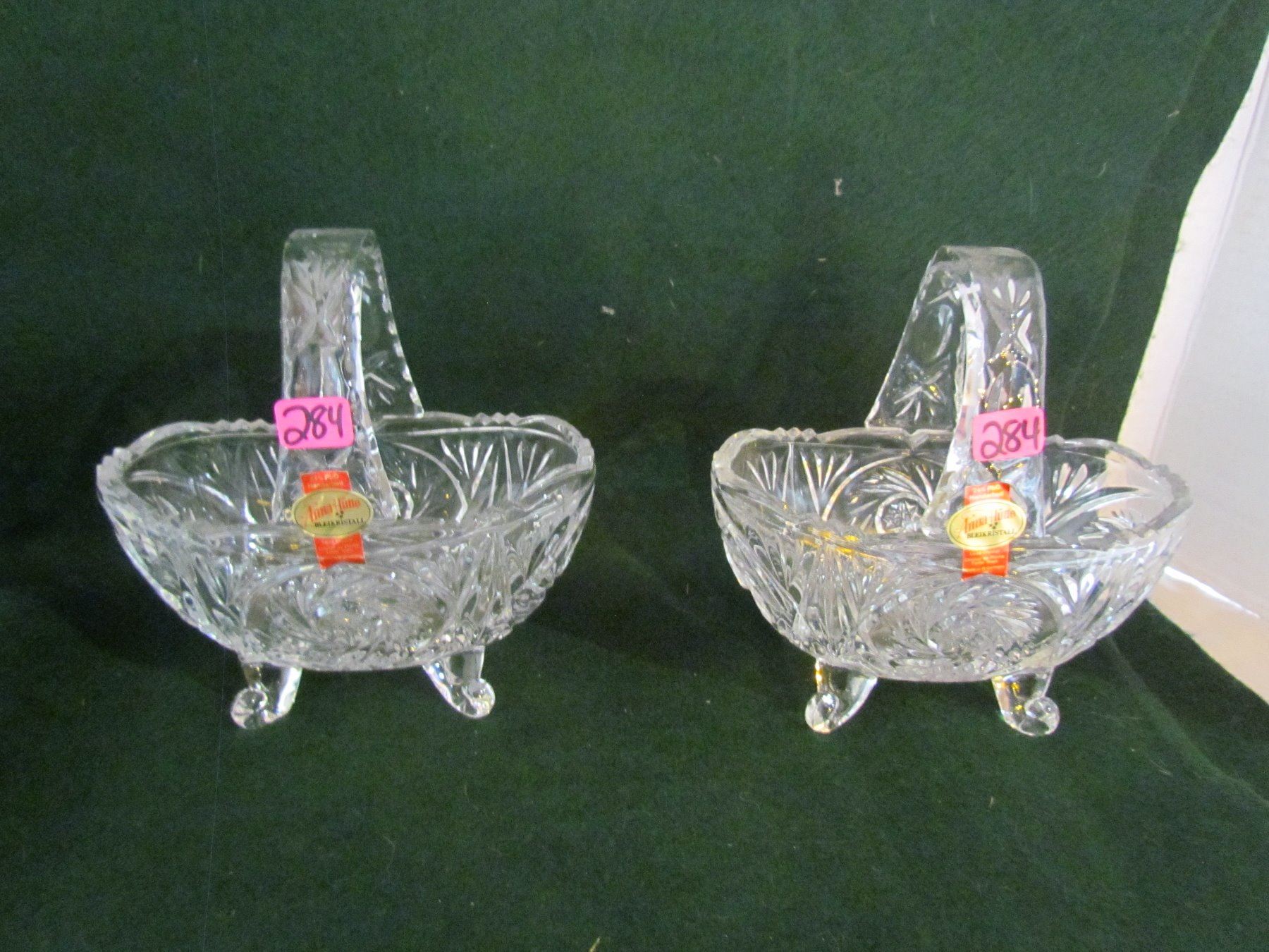 2 Anna Hutte pinwheel lead crystal baskets 6" high footed