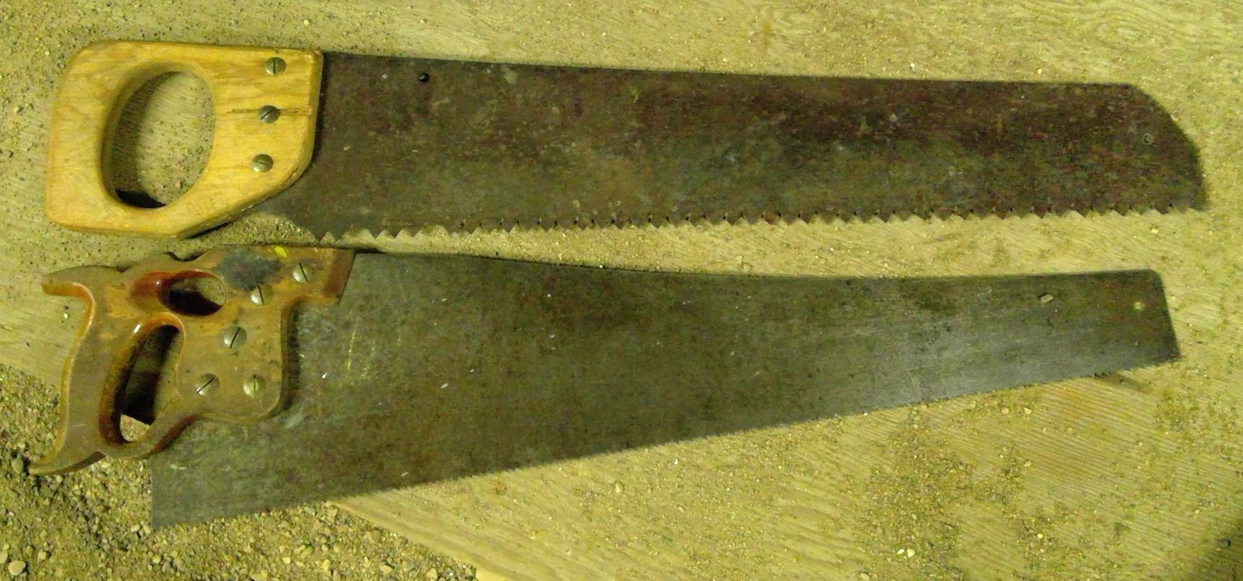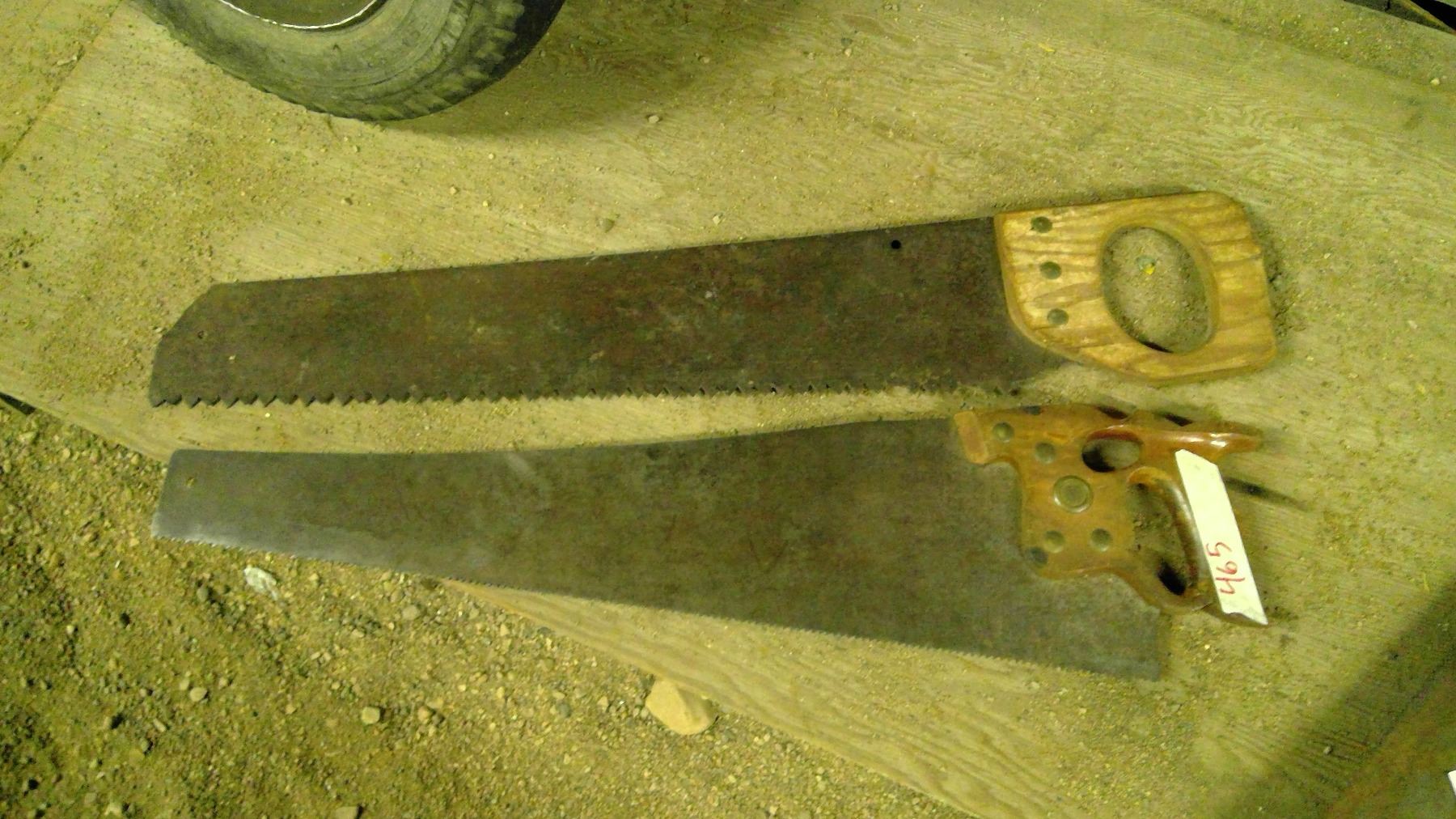 2 Antique Hand Saws w/ Wood Handles