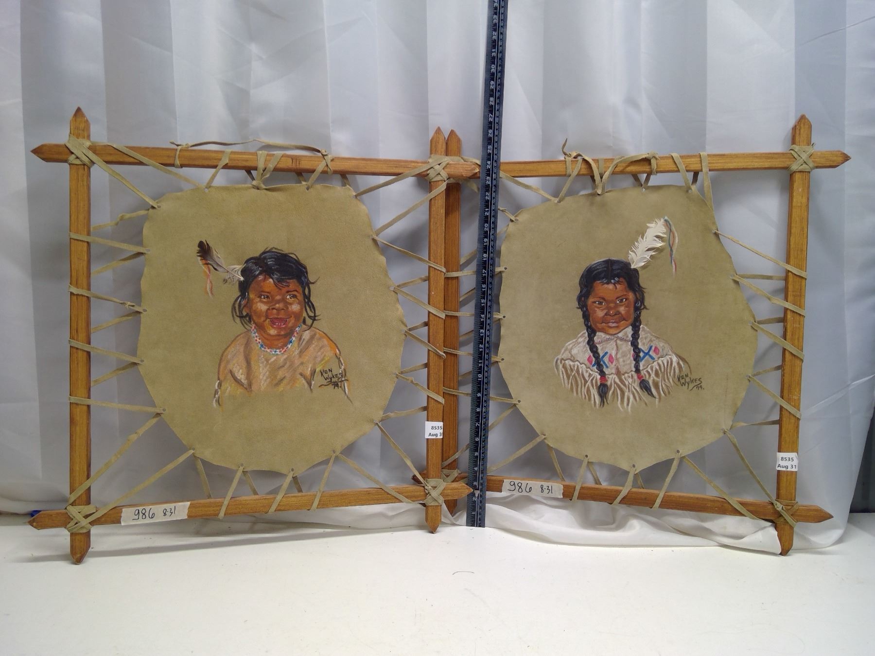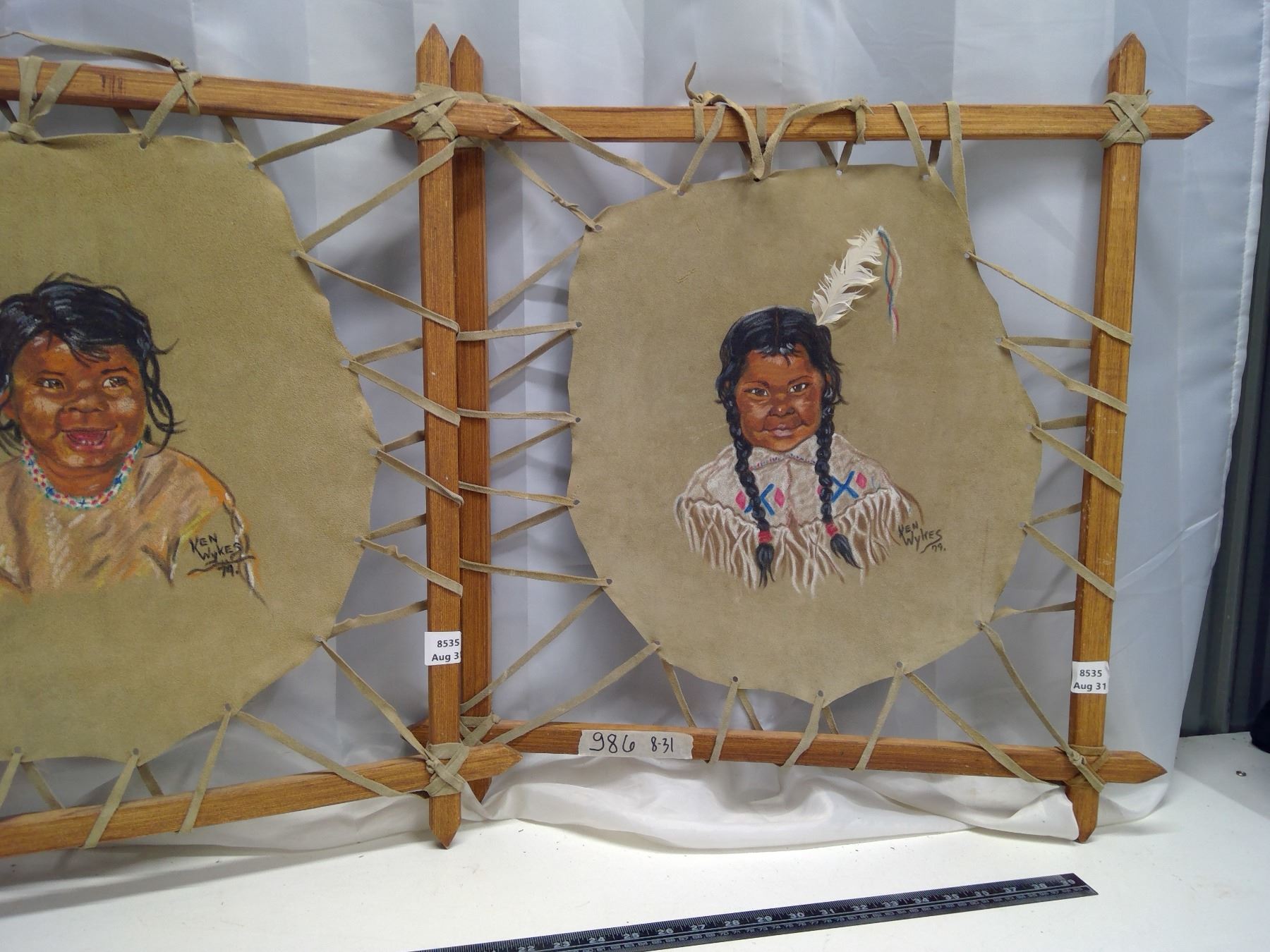 2 Art Fine Oil Painting Leather Art Wooden Hand made Native American Girl by Ken Wykes 79