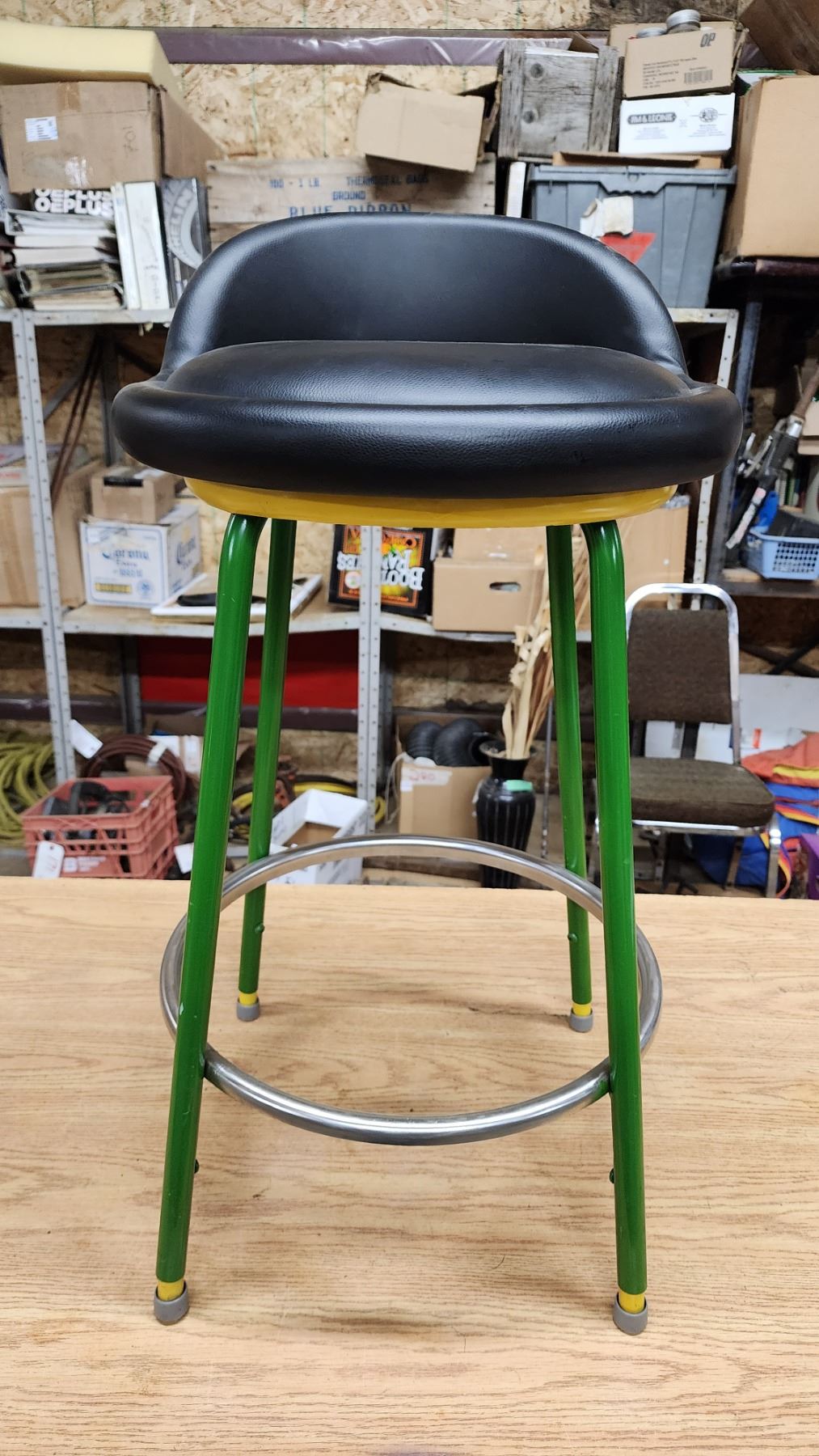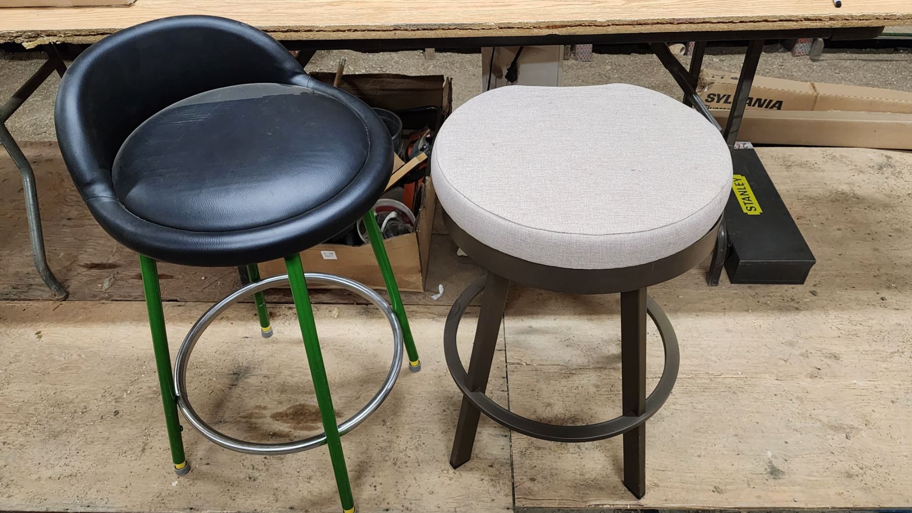 2 Assorted bar stools - Beige, 2ft 2"H x 1ft 5 1/2" - Black, 2ft 3"H x 1ft 5"W