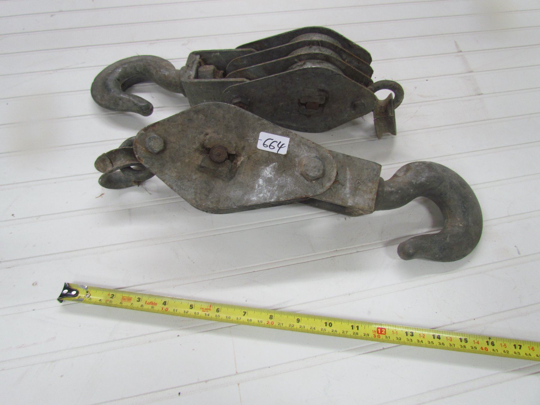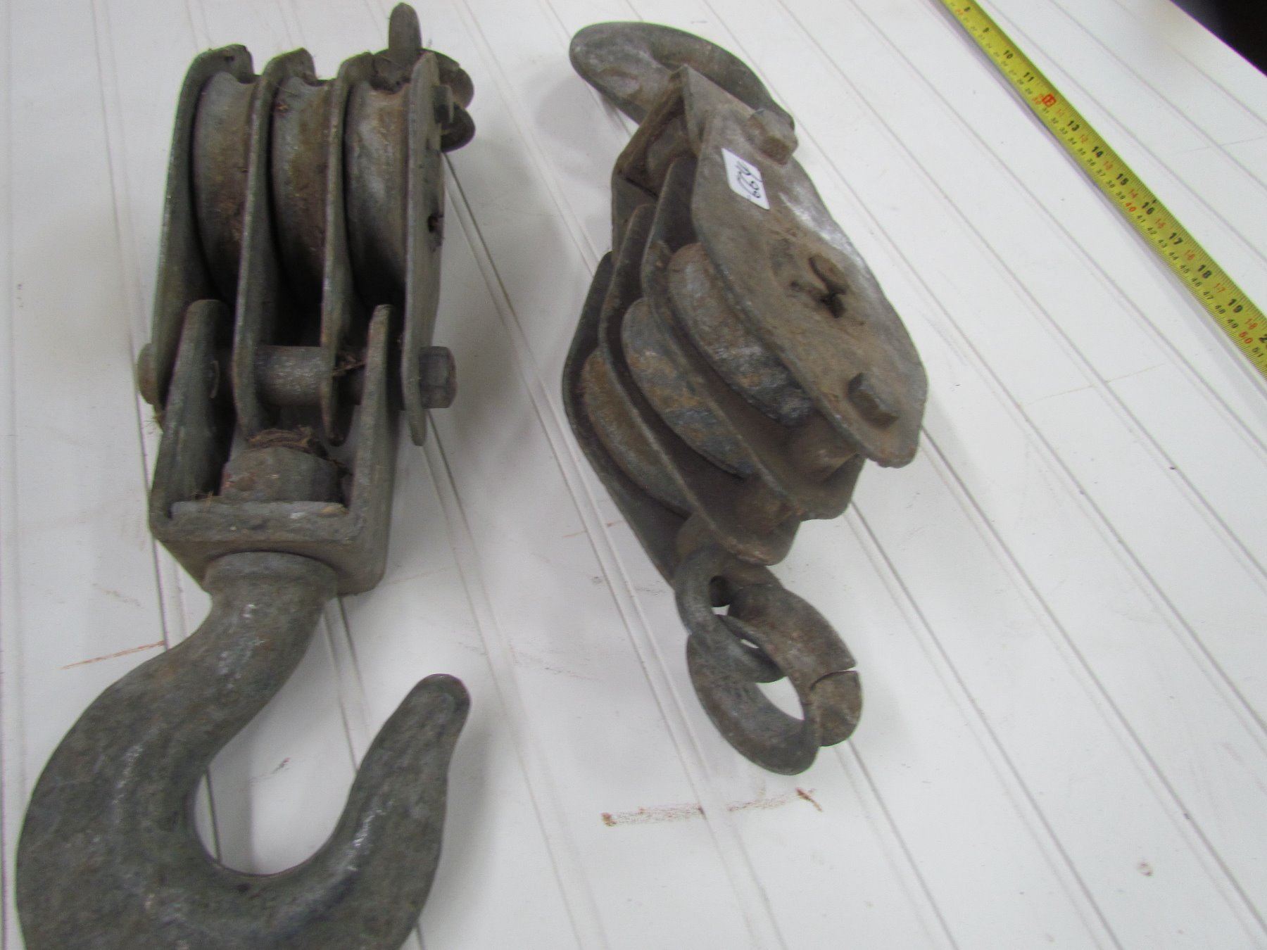 2 BLOCK PULLEYS & HOOKS, *16", EX. COND*