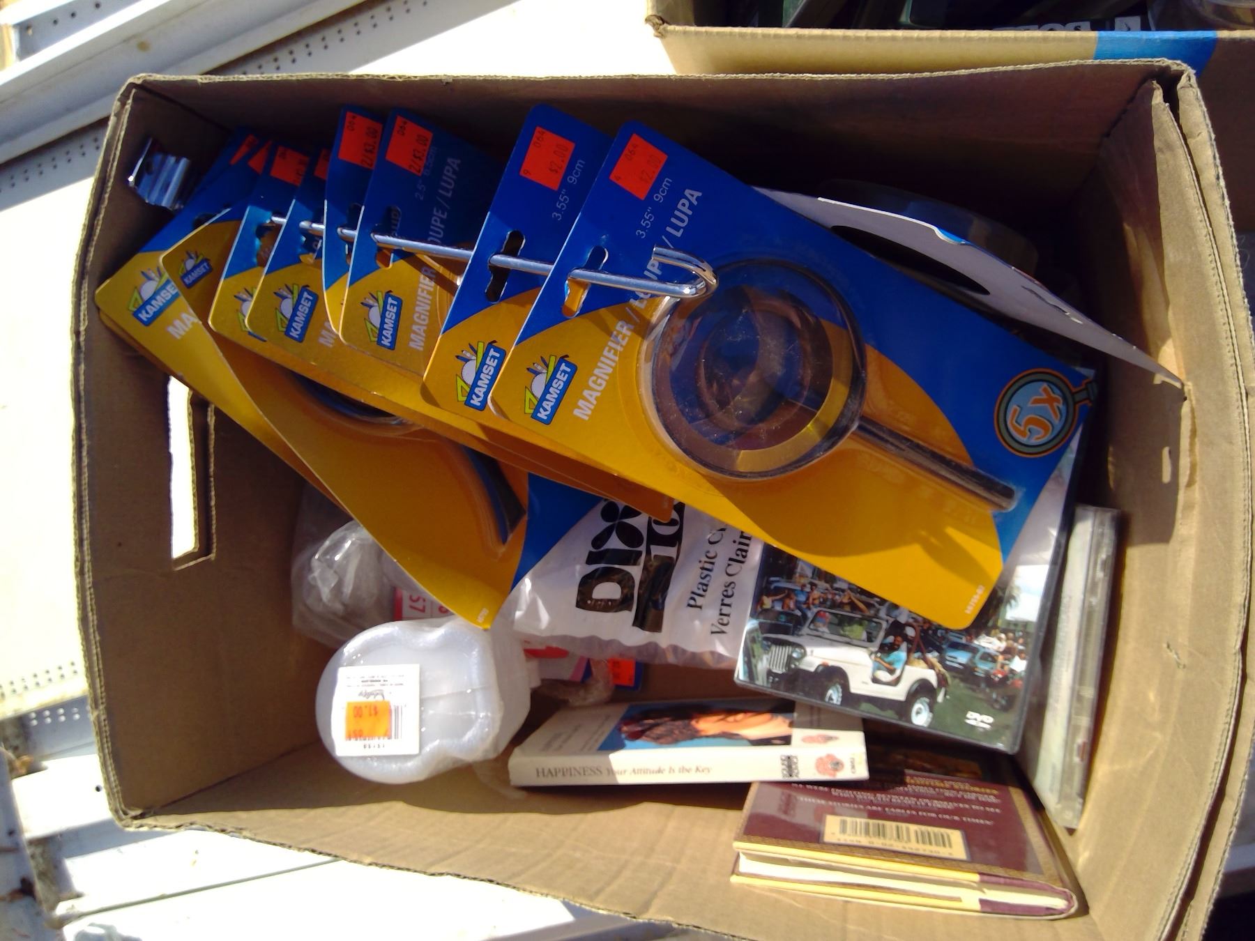 2 BOXES DVDS AND MAGNIFING GLASSES