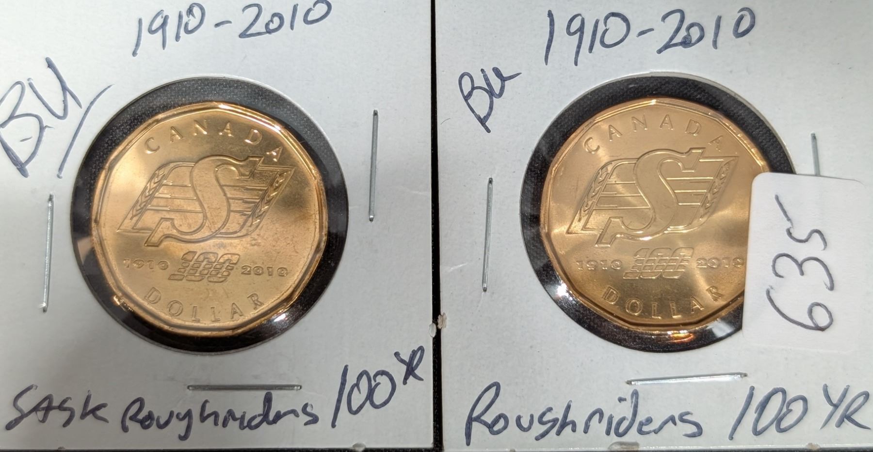 (2) BU Saskatchewan Roughriders 100yr Loonies