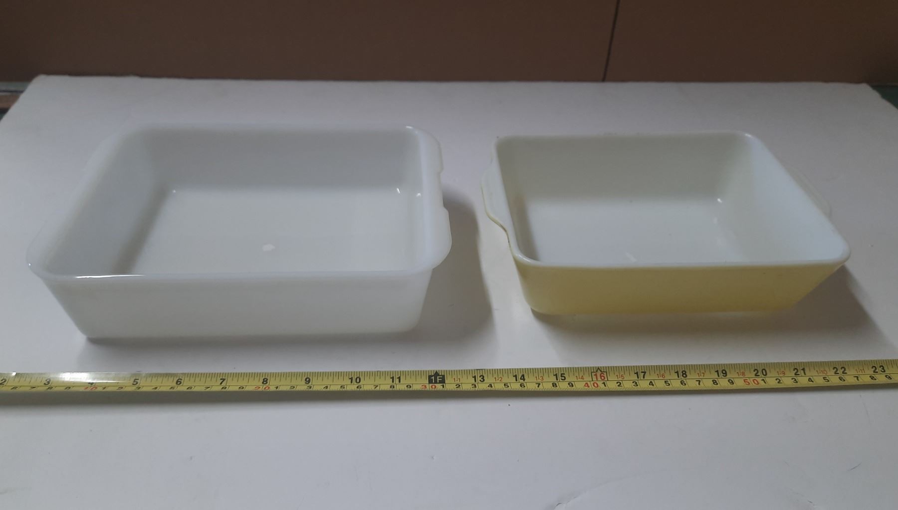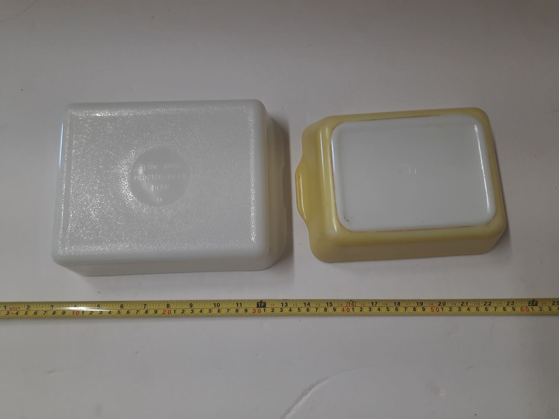 (2) Baking Dishes Antique - One Yellow Pyrex and One White - Proctor Silex Bakeware. (2 Chips)