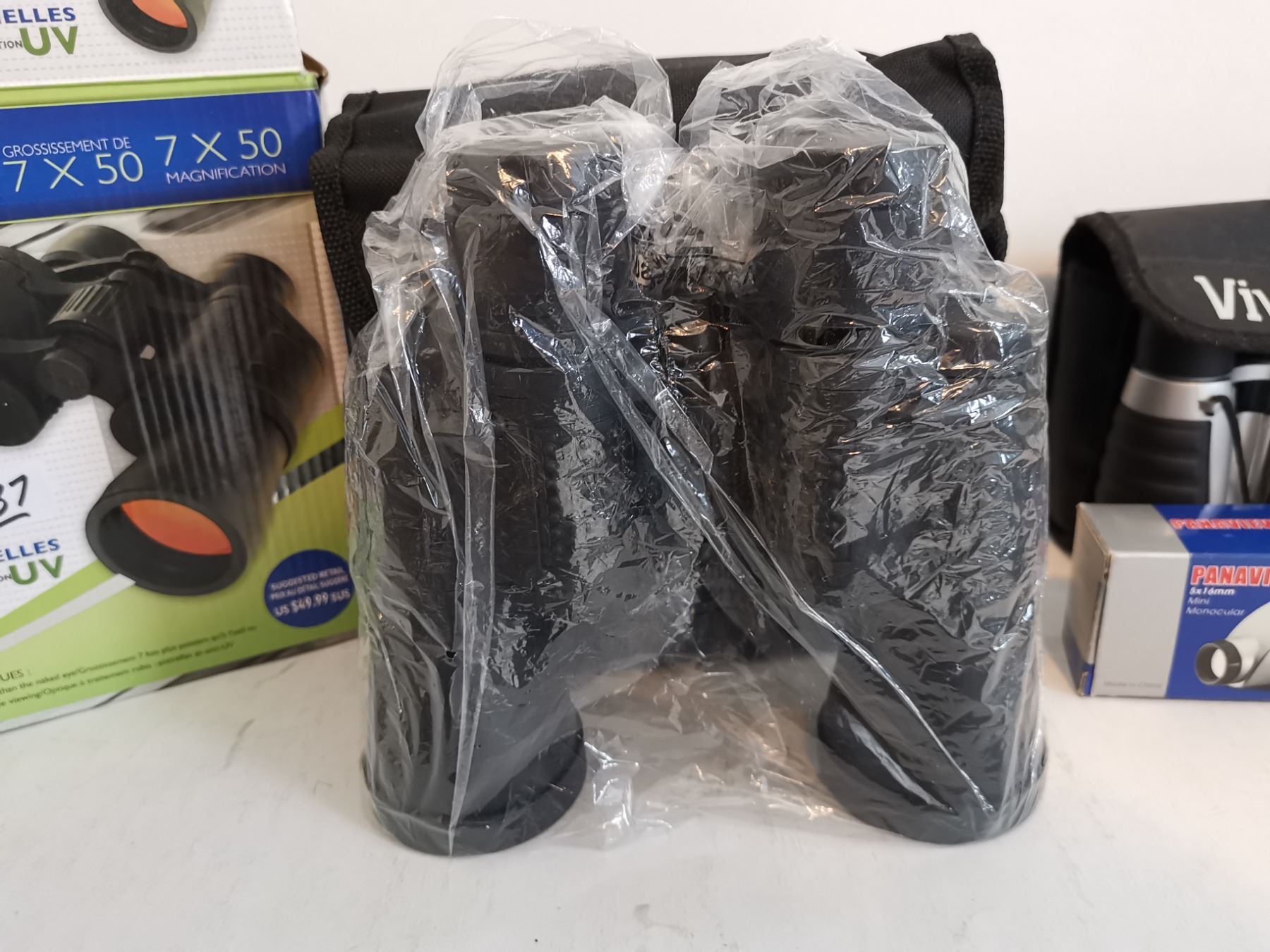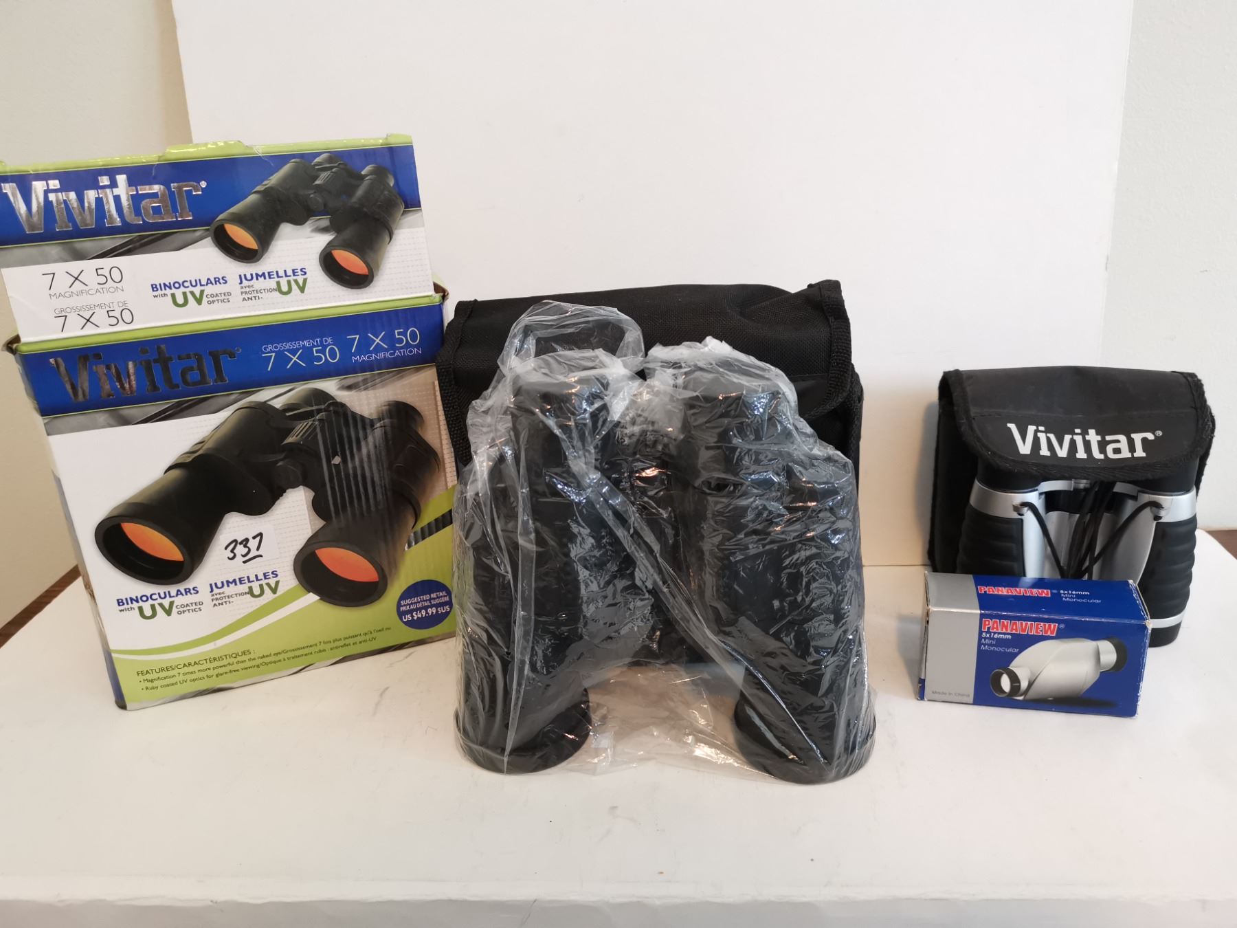 (2) Binoculars, (1) Panaview Monocular. All in Original Case/Boxes