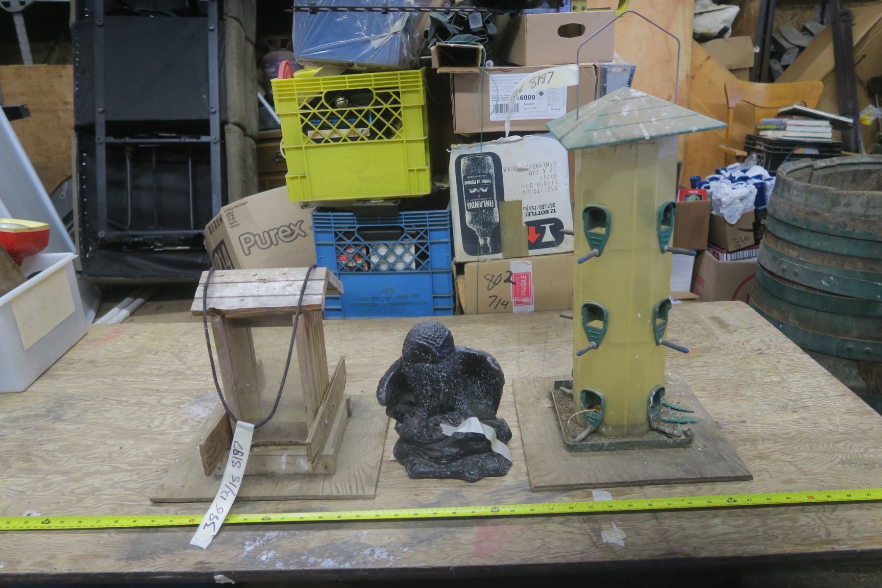 2 Bird Feeders & Soapstone Owl Carving