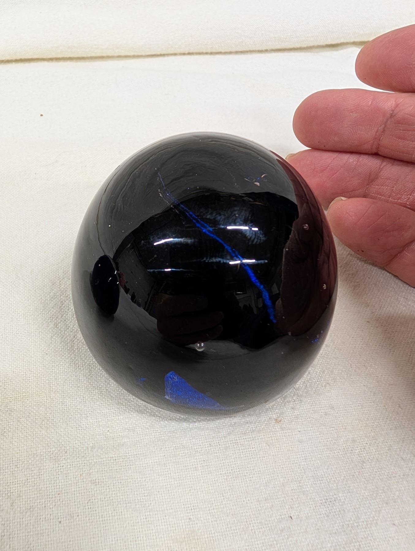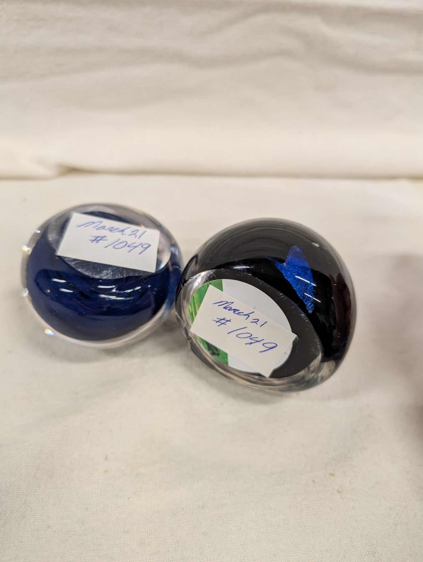 2 Blue Glass Paperweights.
