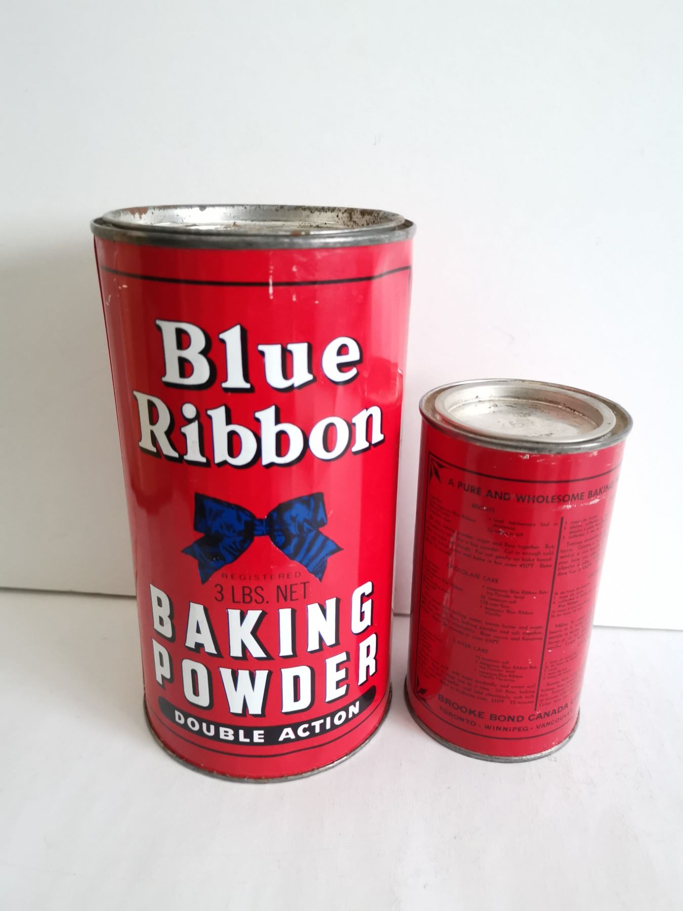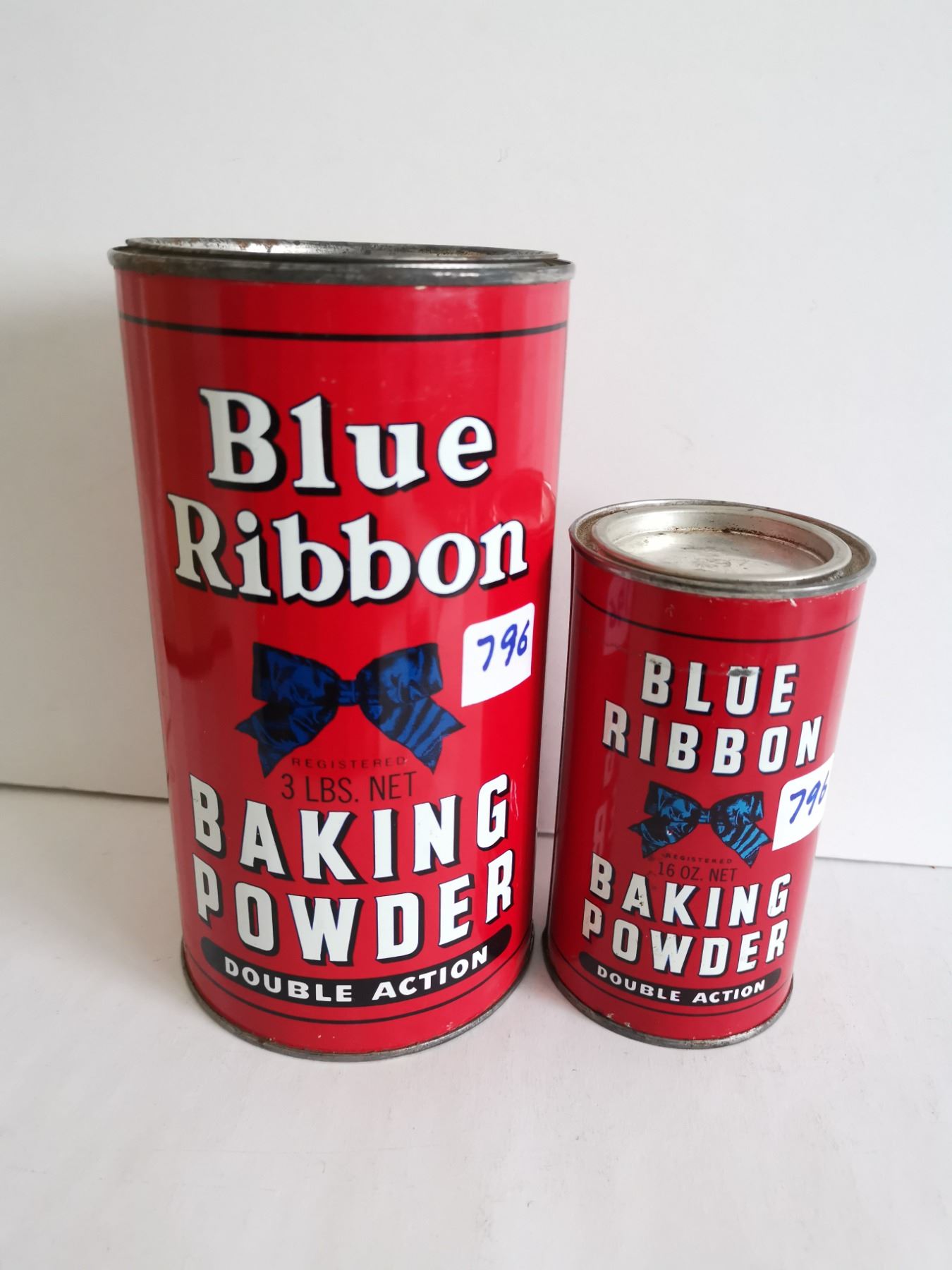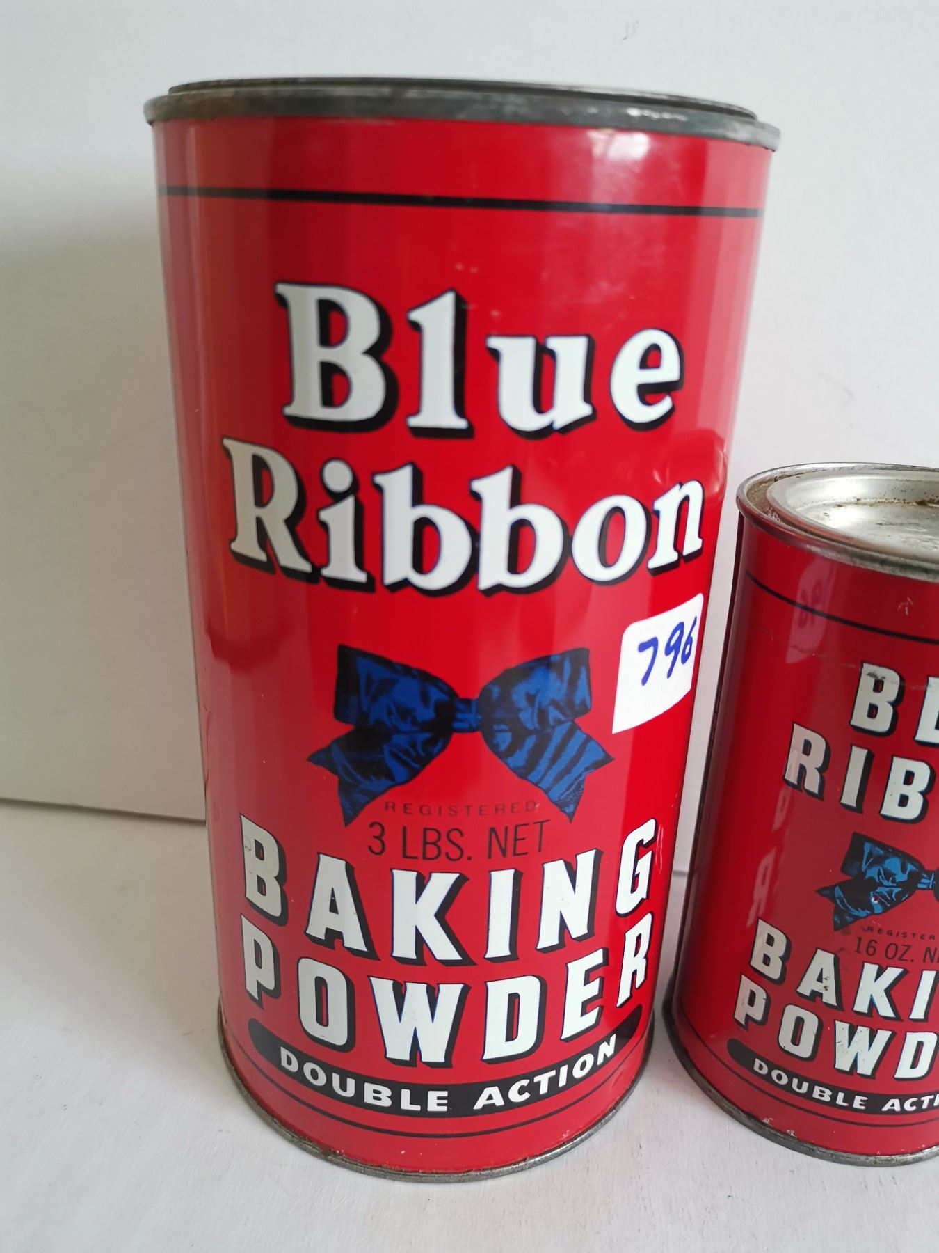 2 Blue Ribbon, baking powder tins - 3lb & 16oz