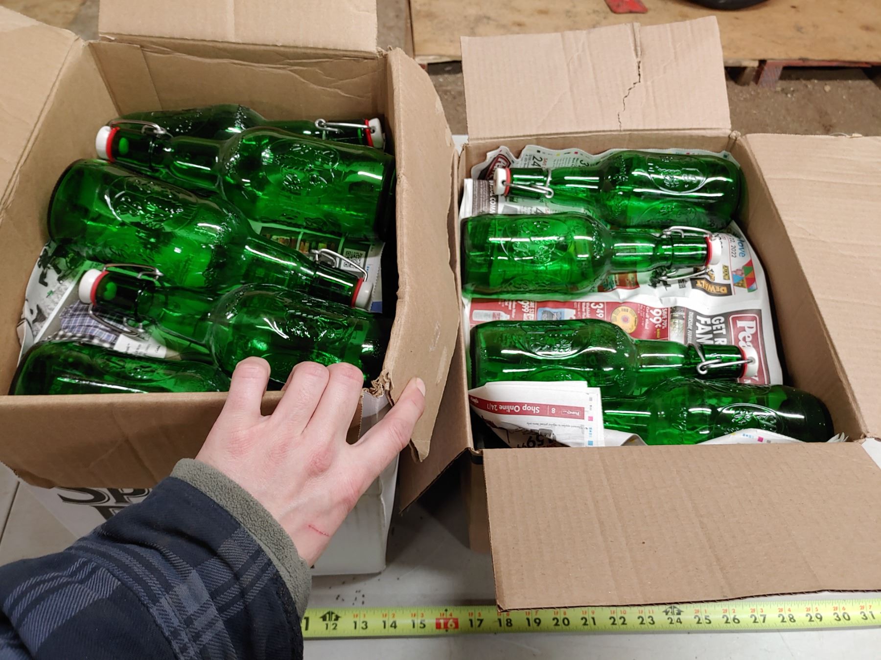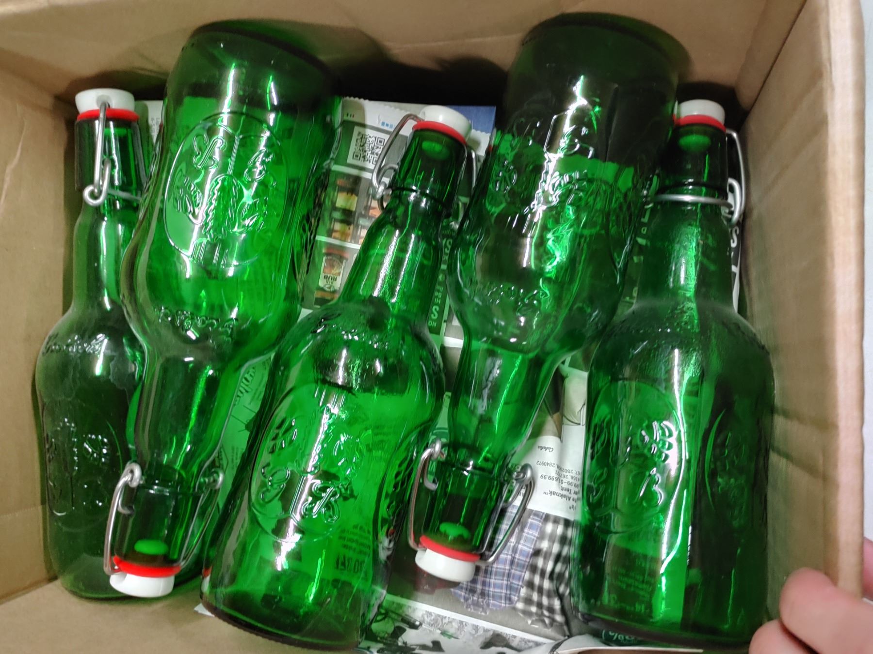 2 Boxes of Green Glass Grolsch Re-Capable Beer Bottles