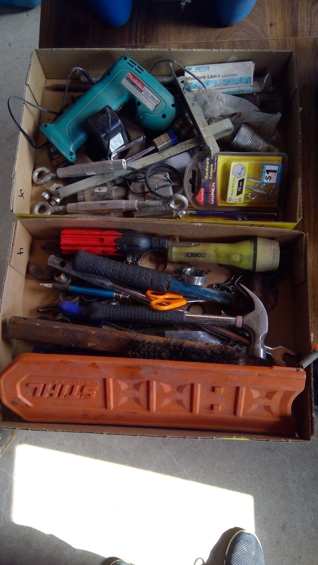 2 Boxes of Shop Items - Hammers, Drill, etc.