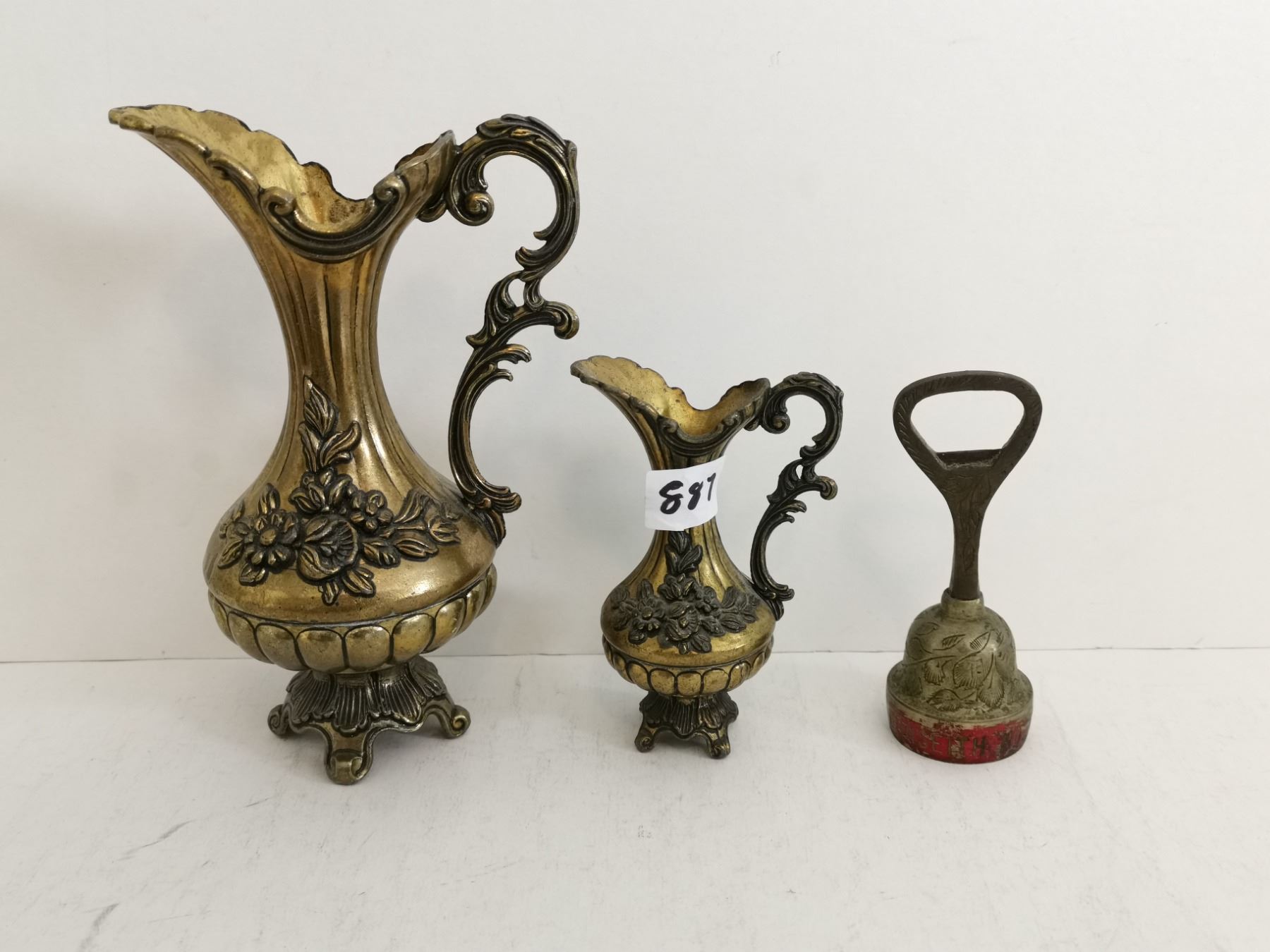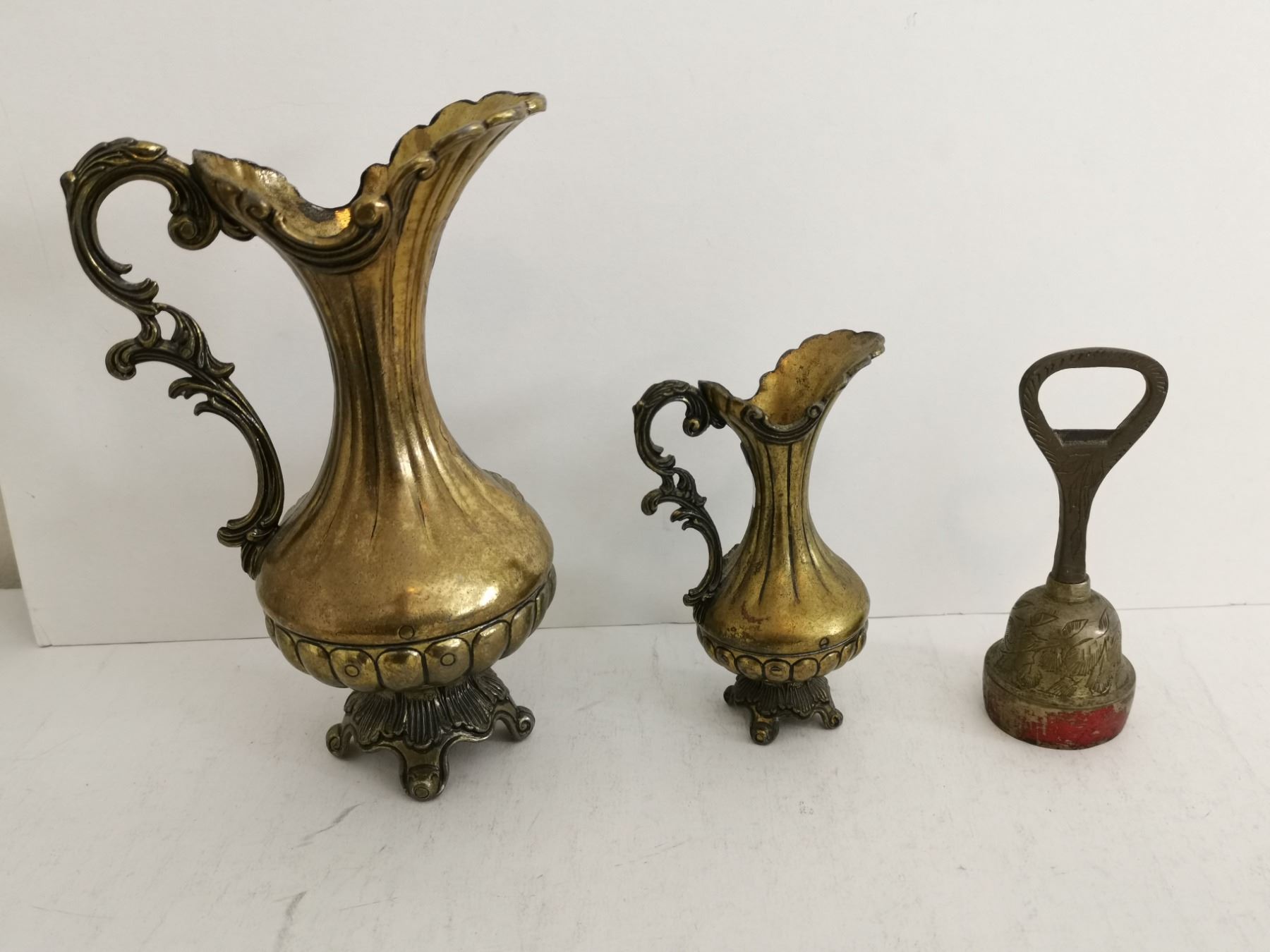 (2) Brass Pitchers and Bell Bottle Opener