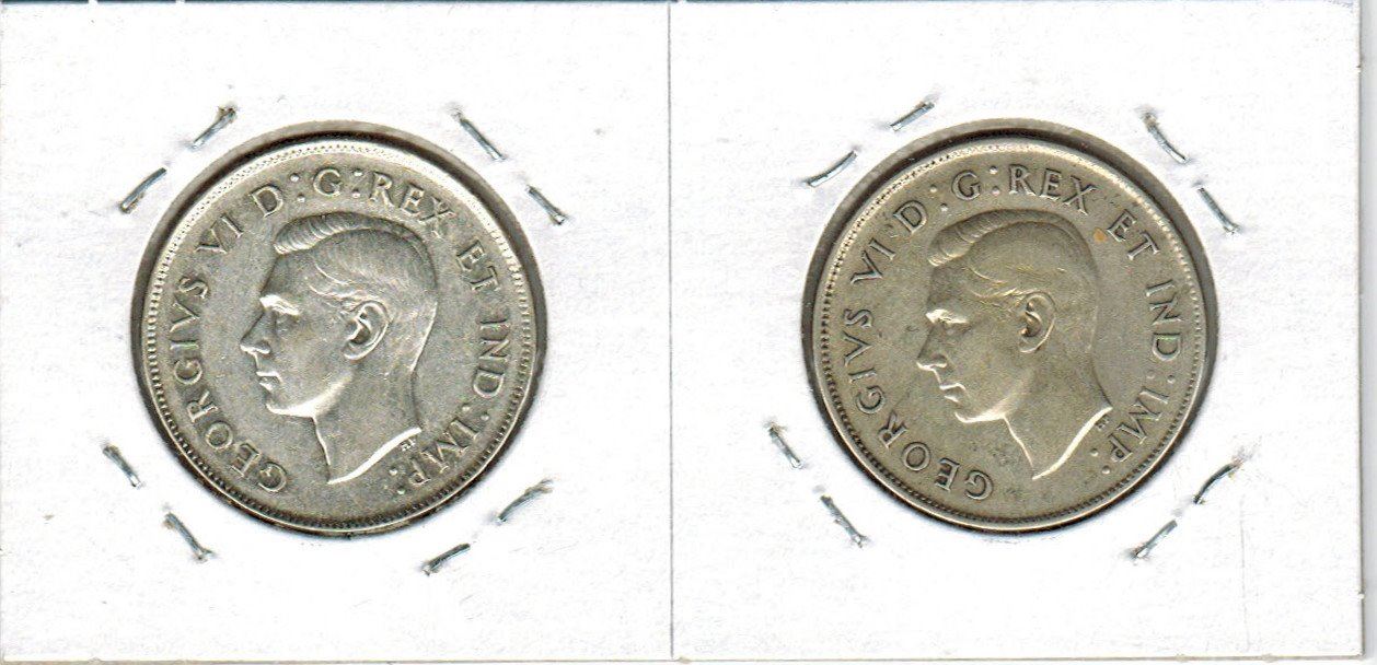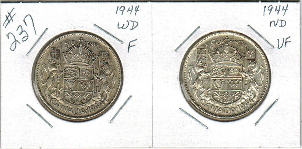 2- CANADIAN SILVER 50 CENT PIECES (1944) *WIDE DATE AND NARROW DATE TYPES*